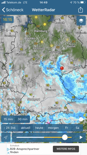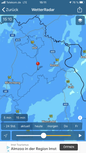 Inzwischen ist sogar die Sonne rausgekommen. Die Vorhersage für morgen ist mit 19° C und wechselnd bewölkt sogar recht gut.