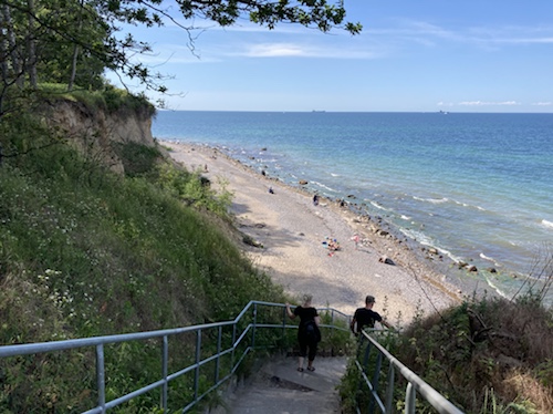 Mittlerweile bin ich auf einem Kliff, im Naturschutzgebiet Stoltera. In der Steilküste nisten Seeschwalben in Erdlöchern. Es kommt anscheinend immer wieder zu Abrutschen, an vielen Stellen ist das Betreten des Kliffs verboten.