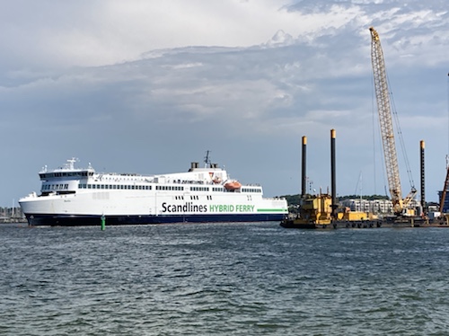 Gesehen, aber nicht fotografiert, habe ich auch eine mit einem Rotorsegel ausgestattete Fähre. Das Rotorsegel sieht wie ein dicker Mast oder überdimensionaler Schornstein aus. Es bringt weitere 4 – 5 % Treibstoffersparnis.