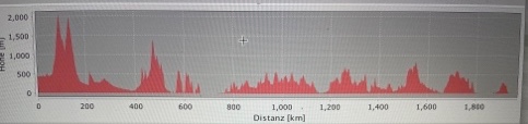 Navigation: Kaum negative Überraschungen, aber sehr viele schöne Strecken, mit denen ich nicht gerechnet hatte. Nebenstraße statt Hauptstraße war öfter mal nicht nötig, hat aber nicht sehr festlegt. Es war super, dass alle Unterkünfte in die Route eingebaut waren. So stand ich abends immer vor dem richtigen Haus. Die Halterung für das Garmin muss erneuert werden.