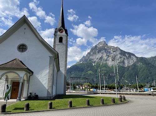 10.41 Uhr – Kilometer 19. Die Alte Kirche Flüelen, ein schöner stiller Ort, zum Singen und Danken für alles, was mir auf dieser erst beginnenden Reise schon geschenkt wurde. Schon seit 1912, als die neue Kirche gebaut wurde, ist sie keine Kirche mehr und wird aktuell für Kulturveranstaltungen genutzt.