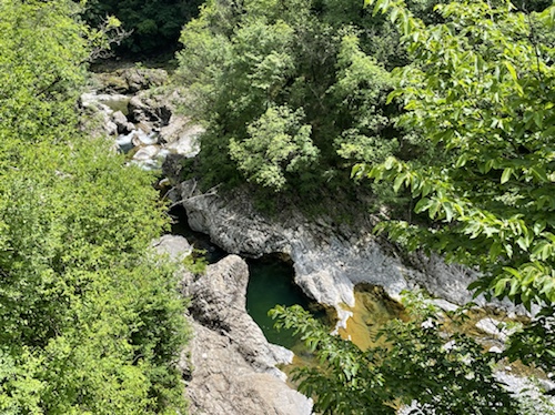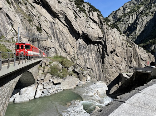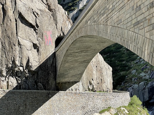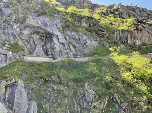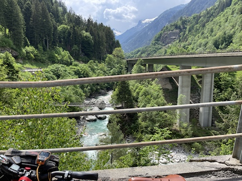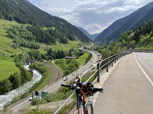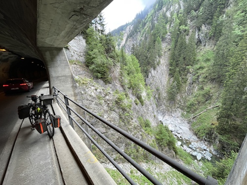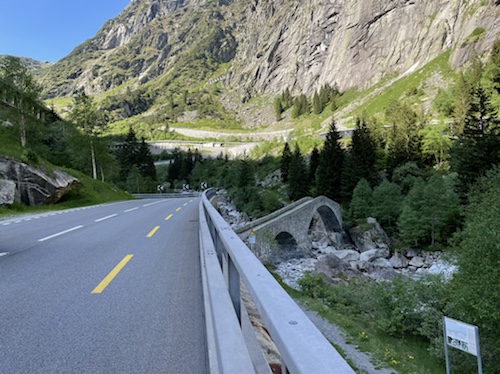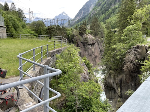 14.00 Uhr – Kilometer 42, Höhe 692 m. Reussschlucht. Der Himmel verdunkelt sich. Nur noch 38° statt 42° in der Sonne. Es geht, trotz teils heftigem Gegenwind.