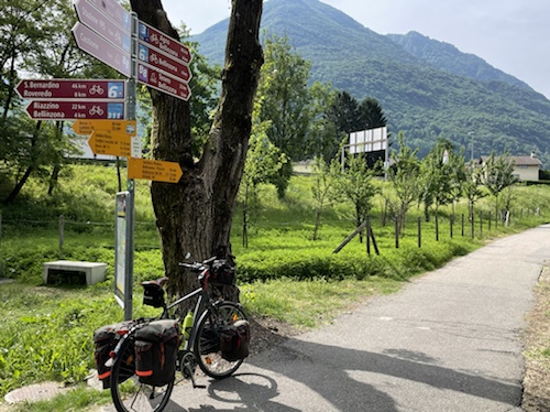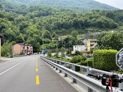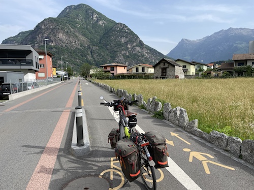 Vom Lukmanier-Pass hinab folge ich dem Fluss Brenno bis nach Biasca, wo er in den Ticino mündet. Hier treffe ich auf die Route der 2020er Schweiz-Tandemtour und folge ihr bis Bellinzona. Über den Luganersee geht es weiter Richtung Süden nach Mailand.
