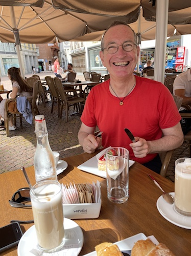 14.19 Uhr – Wir stehen weiterhin in Freiburg. Es gibt Kaltgetränke aufs Haus. Ich habe trotzdem um einen Kaffee gebeten und den von der netten Bedienung, der ich vorhin ein Trinkgeld für das Kaffeebringen gegeben hatte, umsonst, quasi zugesteckt bekommen. In der Annahme, dass ich allerspätestens um 18.03 Uhr den Zug in Basel nehmen kann, bin ich entspannt und glücklich. Mit den Nachbarn ergibt sich gerade eine sehr schöne humorvolle Unterhaltung.