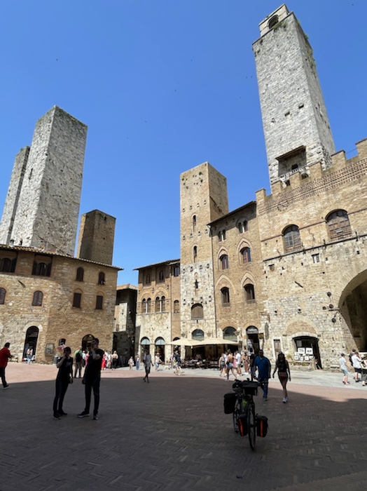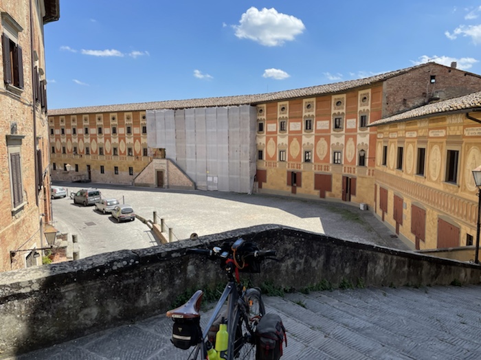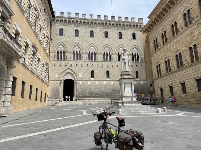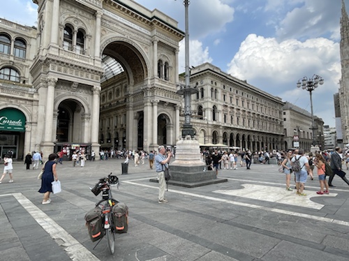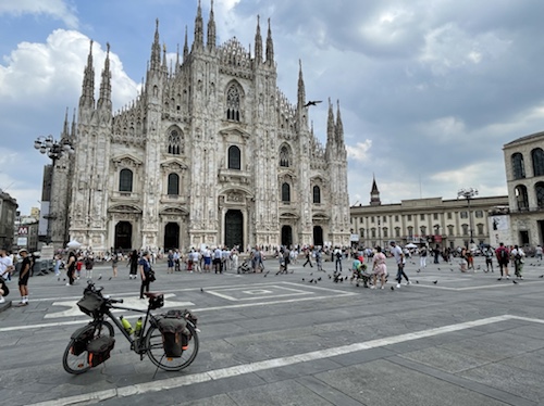 Etappen: 100 km ging, 1500 Hm ging, Alpenpässe und Flachetappen gingen. Die 96 km-Strecke nach Chiusi war für mich wohl die anstrengendste Etappe. Kurze Etappen für Stadtbesichtigungen passten in Siena, Matera und Rom. In Mailand hatte ich ja ungeplante 50 km Umweg, trotzdem war Zeit für den Dom.