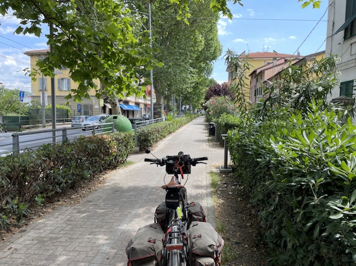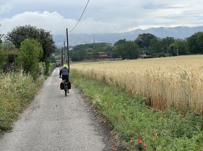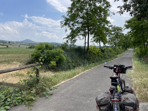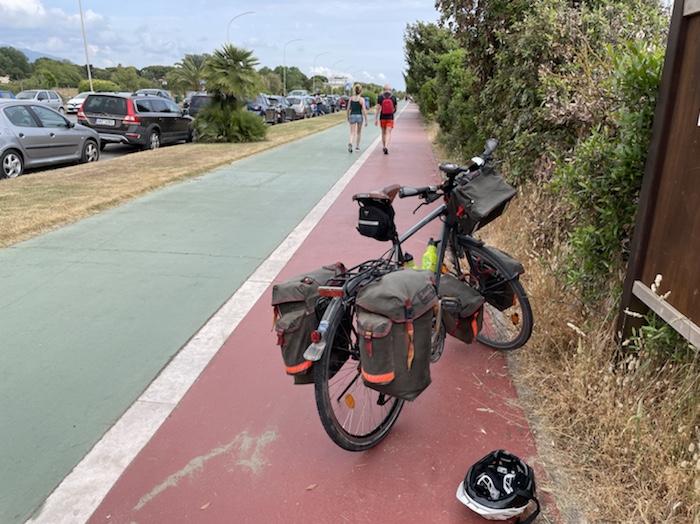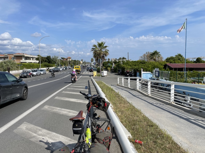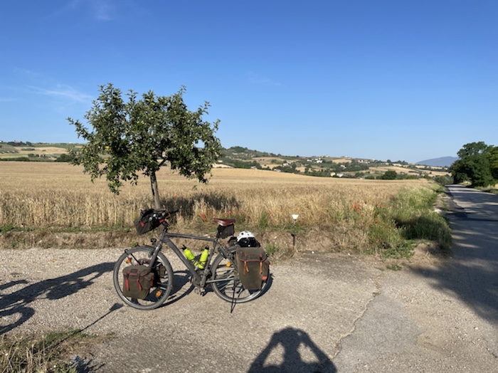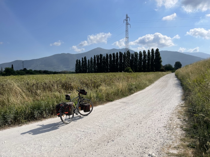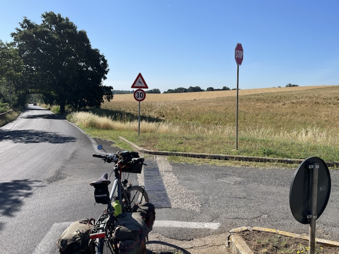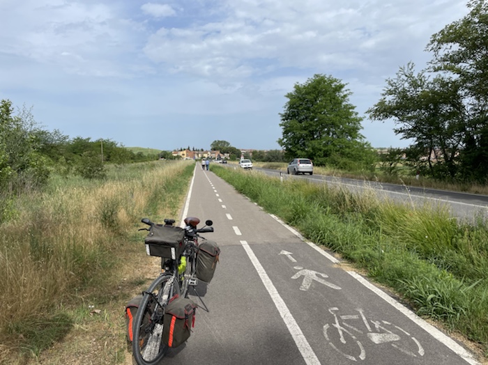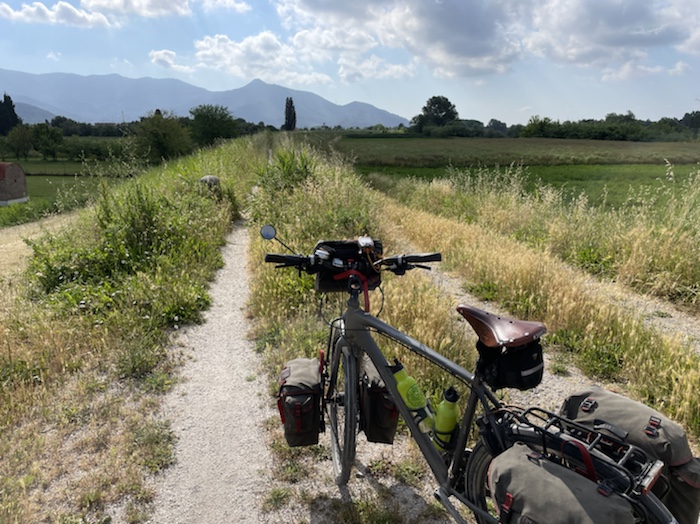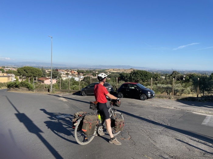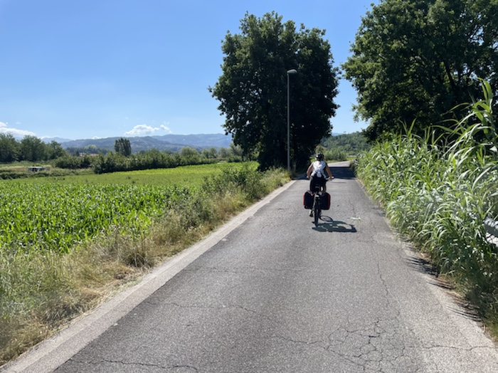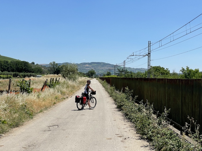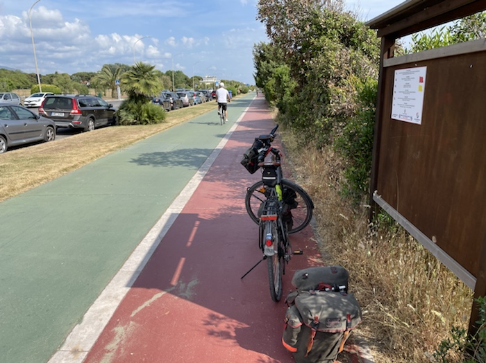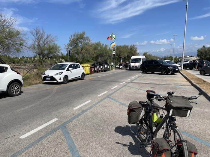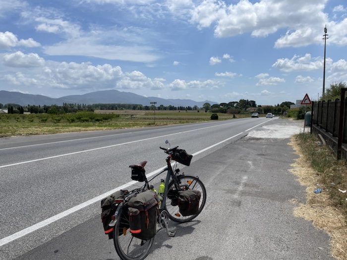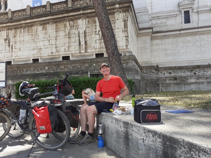 Zum Philosophischen: Italien hat mich begeistert! Keine meiner Sorgen oder Befürchtungen war berechtigt. Das vom Nachbarn geliehene Buch hat mich auf Vieles, was mir unterwegs aufgefallen ist, vorbereitet. Ich glaube, auf meine Stimmung hat sich am ehesten das Müllproblem in weiten Teilen des Landes negativ ausgewirkt. Das war manchmal schwer zu ertragen. Lang waren manche etwas langweilige Passagen durch endlose Plantagen, wie Flussradwege halt, nur ohne Fluss und Bänke. Die schlechten Wege und Straßen waren anstrengend, aber kein Grund zur Sorge. Der Verkehr, das viele Gehupe, das Einfädeln in den Verkehr, egal welche Schilder stehen, damit bin ich schnell gut klargekommen. Gegen die Einbahnstraße zu fahren war immer eine gute Wahl, vor allem in Rom. Gute Radinfrastruktur habe ich auch oft gesehen, wenn auch, wie auch oft bei uns, viel Stückwerk. Die Staubpisten sind gewöhnungsbedürftig und für Mensch und Material eine Belastung. Dafür führen sie abseits vom Verkehr durch dieses wunderschöne Land. Das gute Essen, die freundlichen Gastgeber- und Kellner:innen, die ungeheuere Vielzahl an kulturellen Schätzen, die Landschaftsvielfalt, das trocken warme Wetter, die vielen netten Begegnungen: Die Liste an Gründen ist lang, die Reise als sehr gelungen zu sehen.