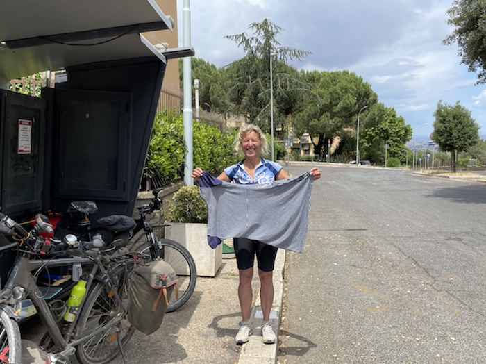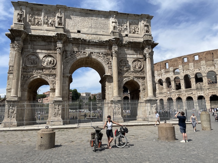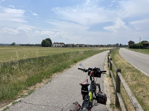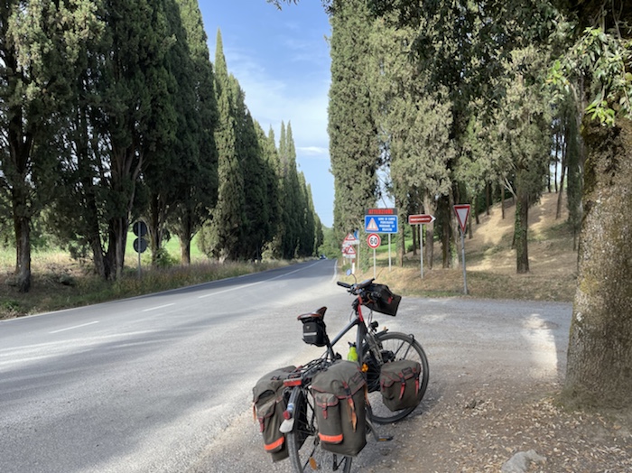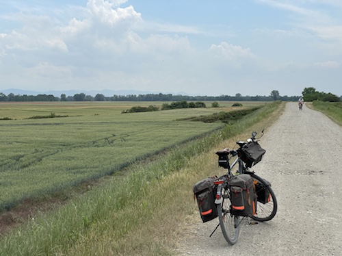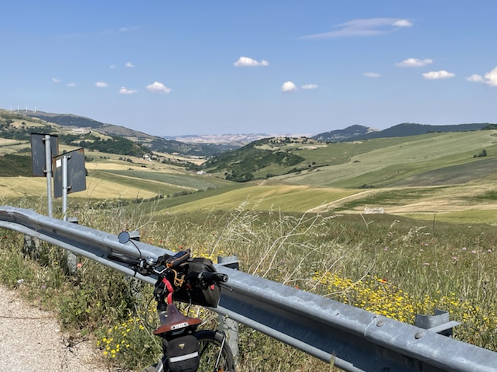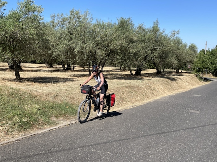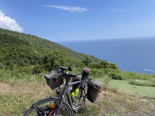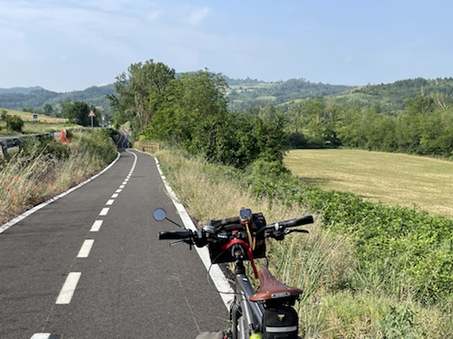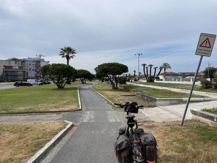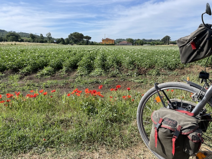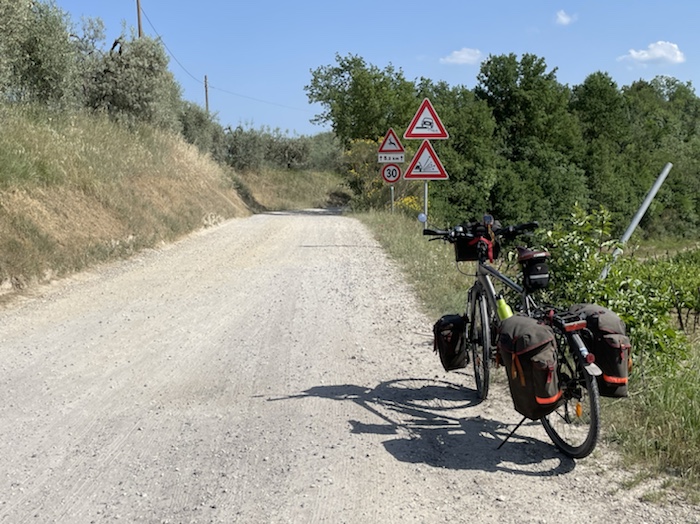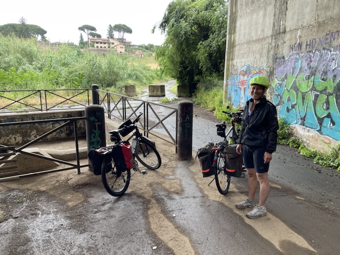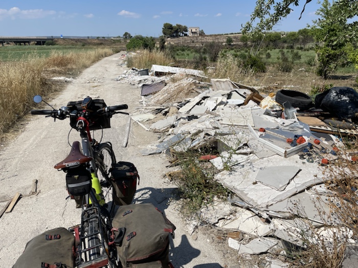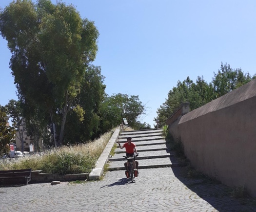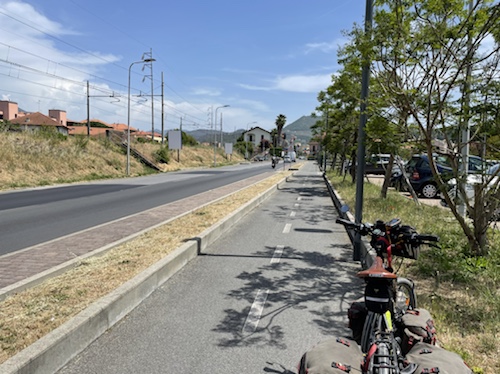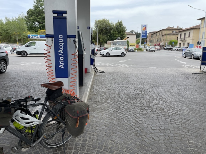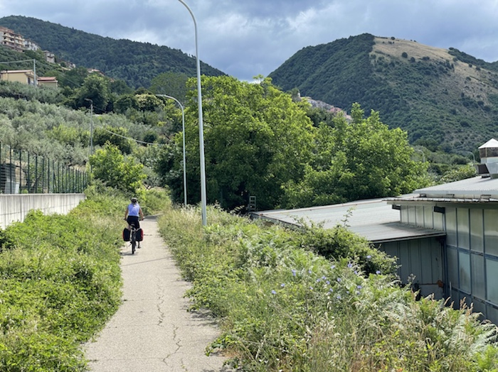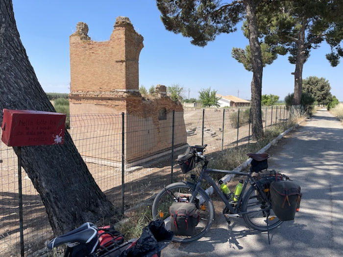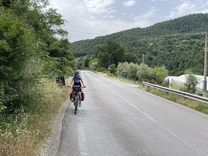 Zum Philosophischen: Italien hat mich begeistert! Keine meiner Sorgen oder Befürchtungen war berechtigt. Das vom Nachbarn geliehene Buch hat mich auf Vieles, was mir unterwegs aufgefallen ist, vorbereitet. Ich glaube, auf meine Stimmung hat sich am ehesten das Müllproblem in weiten Teilen des Landes negativ ausgewirkt. Das war manchmal schwer zu ertragen. Lang waren manche etwas langweilige Passagen durch endlose Plantagen, wie Flussradwege halt, nur ohne Fluss und Bänke. Die schlechten Wege und Straßen waren anstrengend, aber kein Grund zur Sorge. Der Verkehr, das viele Gehupe, das Einfädeln in den Verkehr, egal welche Schilder stehen, damit bin ich schnell gut klargekommen. Gegen die Einbahnstraße zu fahren war immer eine gute Wahl, vor allem in Rom. Gute Radinfrastruktur habe ich auch oft gesehen, wenn auch, wie auch oft bei uns, viel Stückwerk. Die Staubpisten sind gewöhnungsbedürftig und für Mensch und Material eine Belastung. Dafür führen sie abseits vom Verkehr durch dieses wunderschöne Land. Das gute Essen, die freundlichen Gastgeber- und Kellner:innen, die ungeheuere Vielzahl an kulturellen Schätzen, die Landschaftsvielfalt, das trocken warme Wetter, die vielen netten Begegnungen: Die Liste an Gründen ist lang, die Reise als sehr gelungen zu sehen.