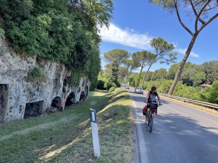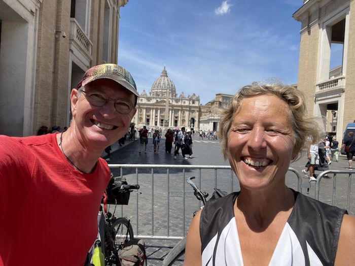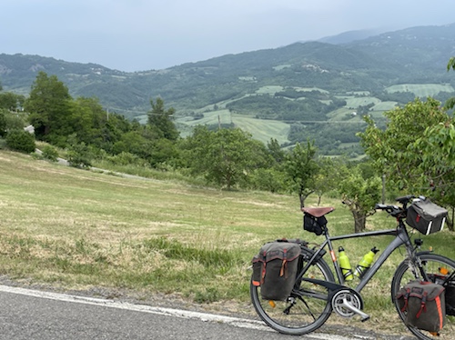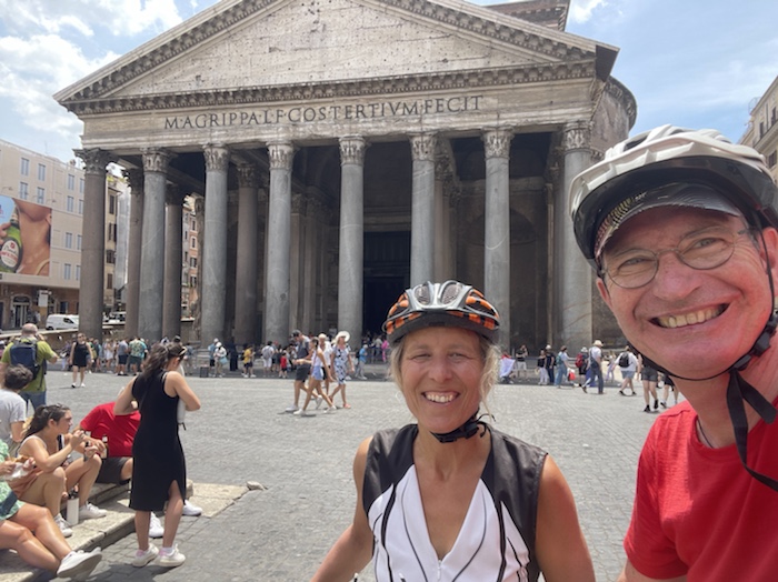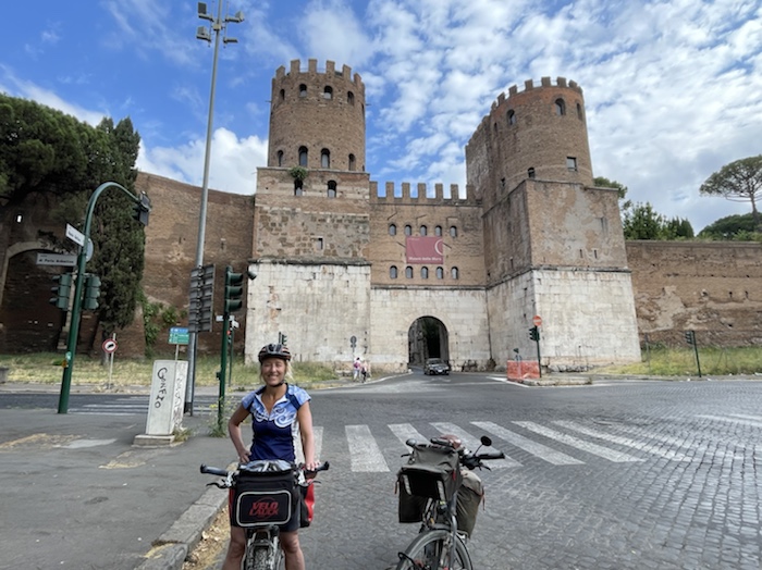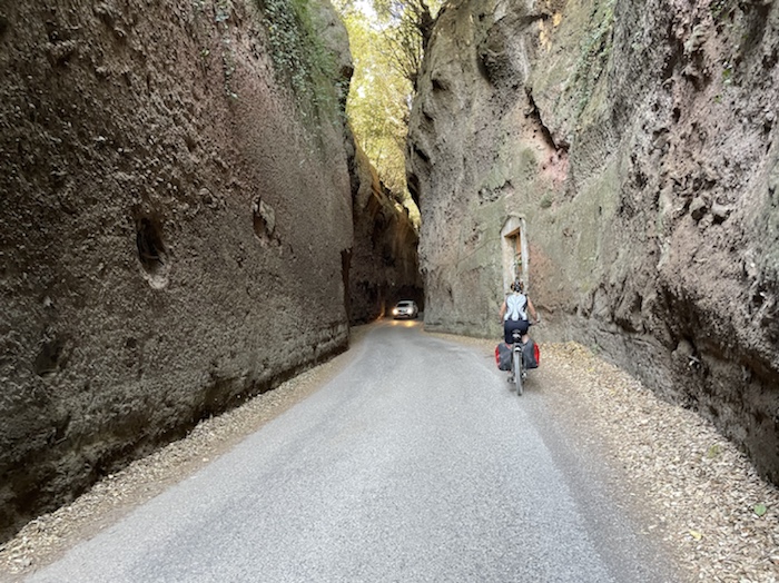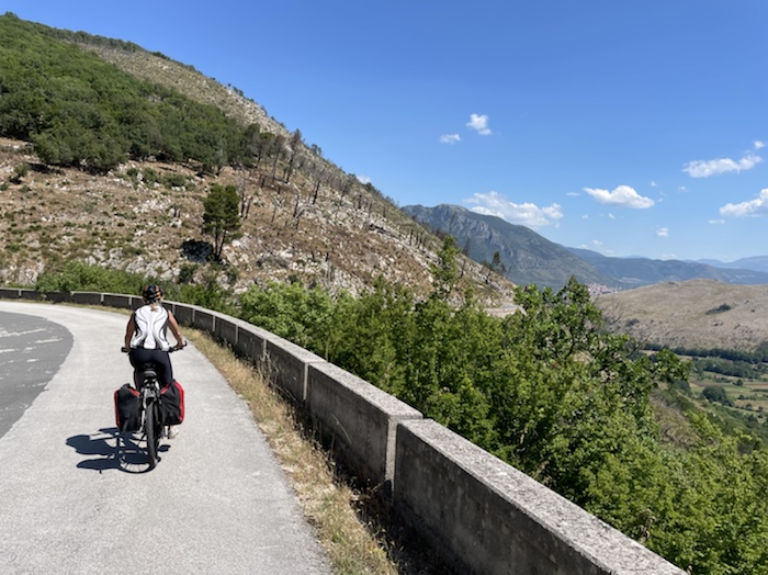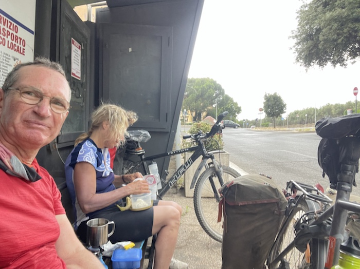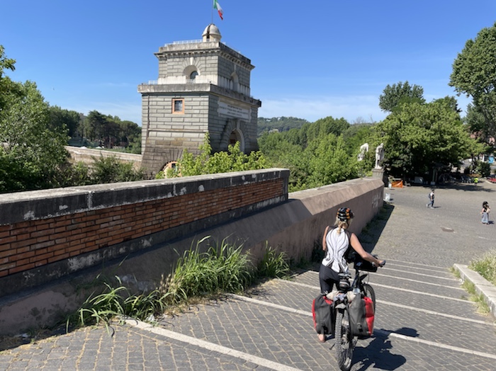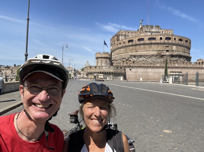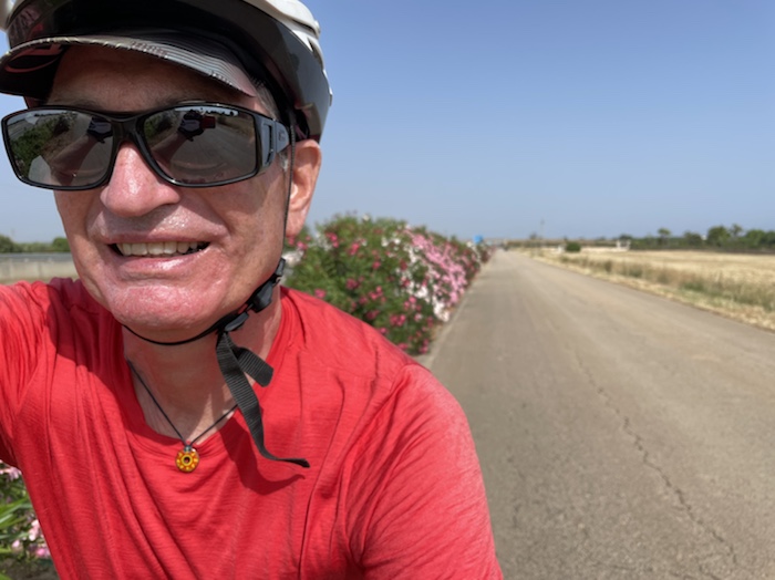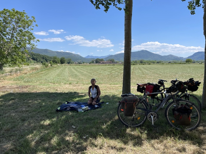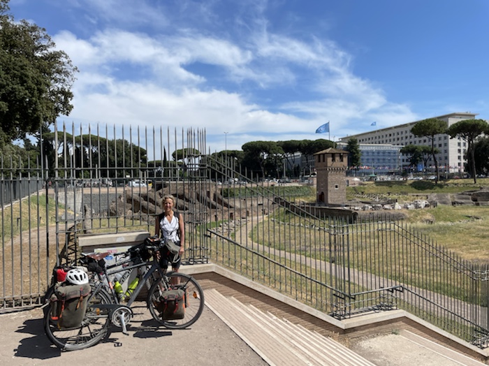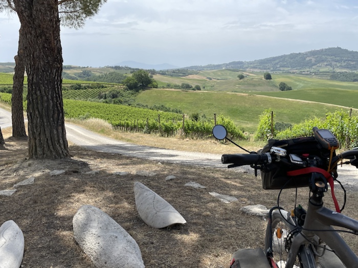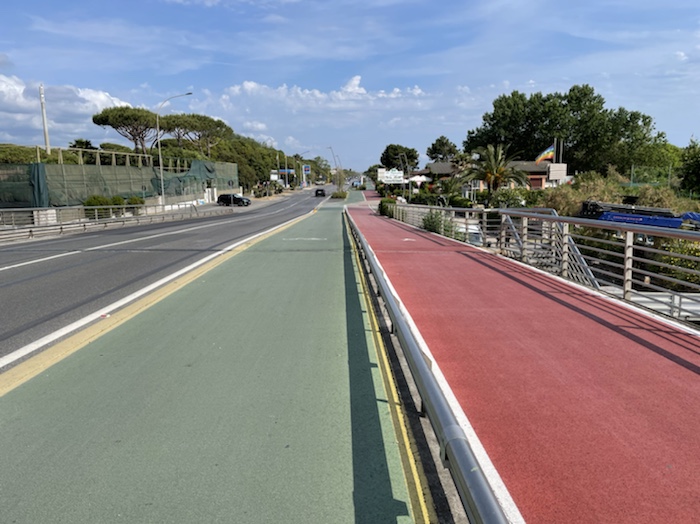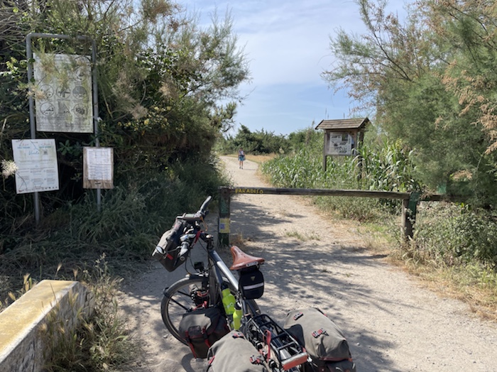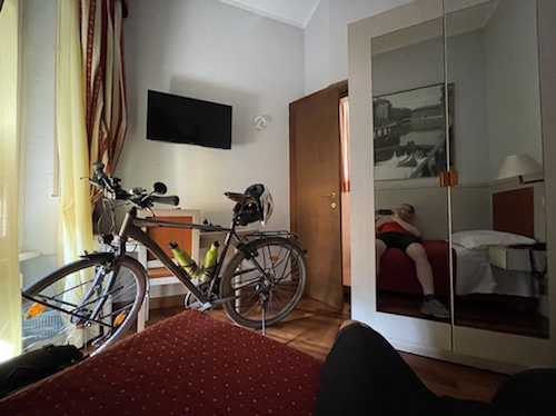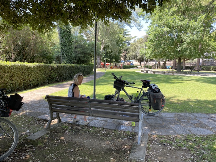 Zum Philosophischen: Italien hat mich begeistert! Keine meiner Sorgen oder Befürchtungen war berechtigt. Das vom Nachbarn geliehene Buch hat mich auf Vieles, was mir unterwegs aufgefallen ist, vorbereitet. Ich glaube, auf meine Stimmung hat sich am ehesten das Müllproblem in weiten Teilen des Landes negativ ausgewirkt. Das war manchmal schwer zu ertragen. Lang waren manche etwas langweilige Passagen durch endlose Plantagen, wie Flussradwege halt, nur ohne Fluss und Bänke. Die schlechten Wege und Straßen waren anstrengend, aber kein Grund zur Sorge. Der Verkehr, das viele Gehupe, das Einfädeln in den Verkehr, egal welche Schilder stehen, damit bin ich schnell gut klargekommen. Gegen die Einbahnstraße zu fahren war immer eine gute Wahl, vor allem in Rom. Gute Radinfrastruktur habe ich auch oft gesehen, wenn auch, wie auch oft bei uns, viel Stückwerk. Die Staubpisten sind gewöhnungsbedürftig und für Mensch und Material eine Belastung. Dafür führen sie abseits vom Verkehr durch dieses wunderschöne Land. Das gute Essen, die freundlichen Gastgeber- und Kellner:innen, die ungeheuere Vielzahl an kulturellen Schätzen, die Landschaftsvielfalt, das trocken warme Wetter, die vielen netten Begegnungen: Die Liste an Gründen ist lang, die Reise als sehr gelungen zu sehen.
