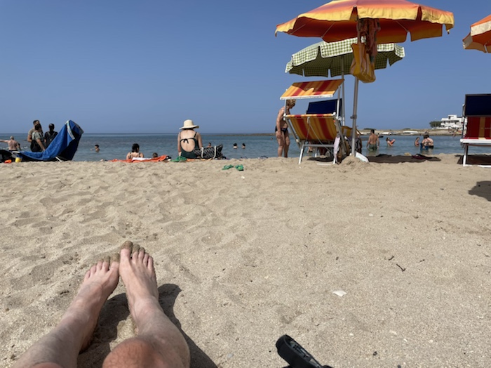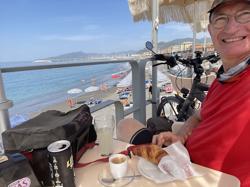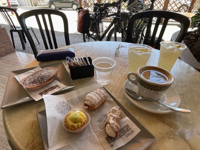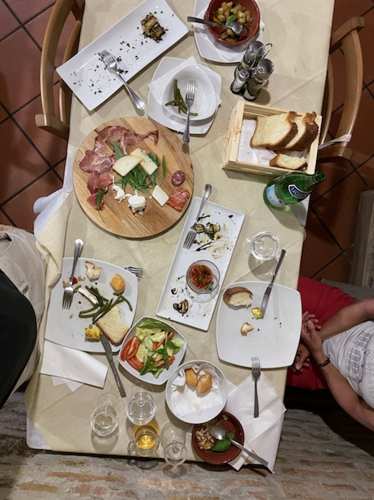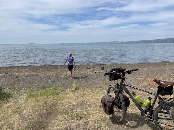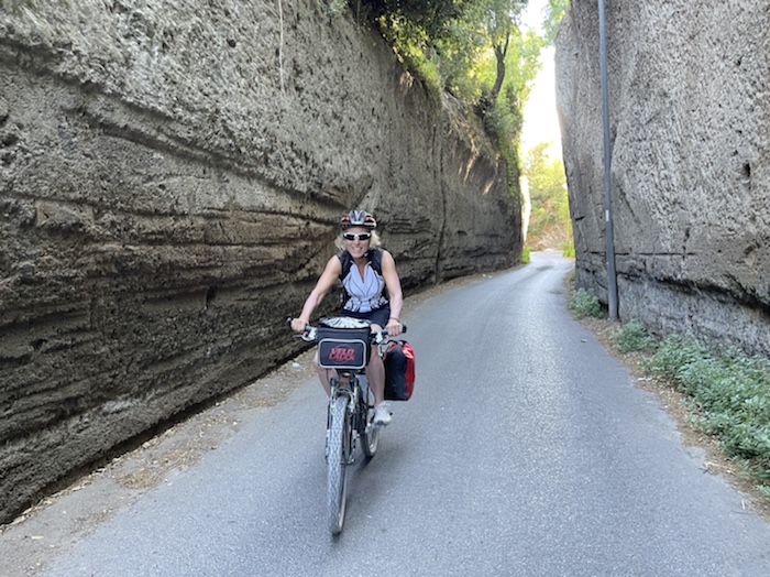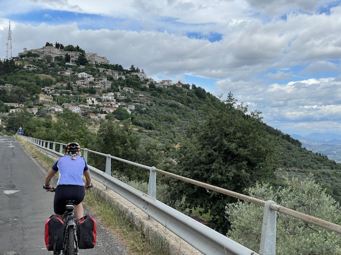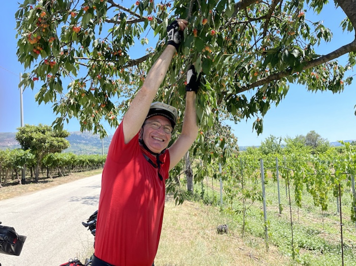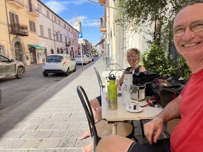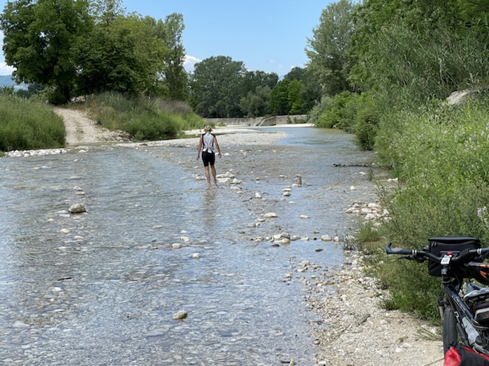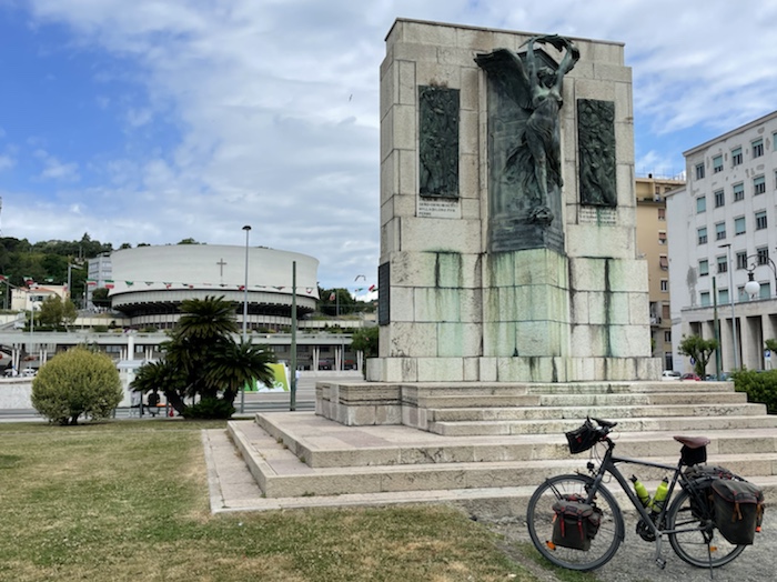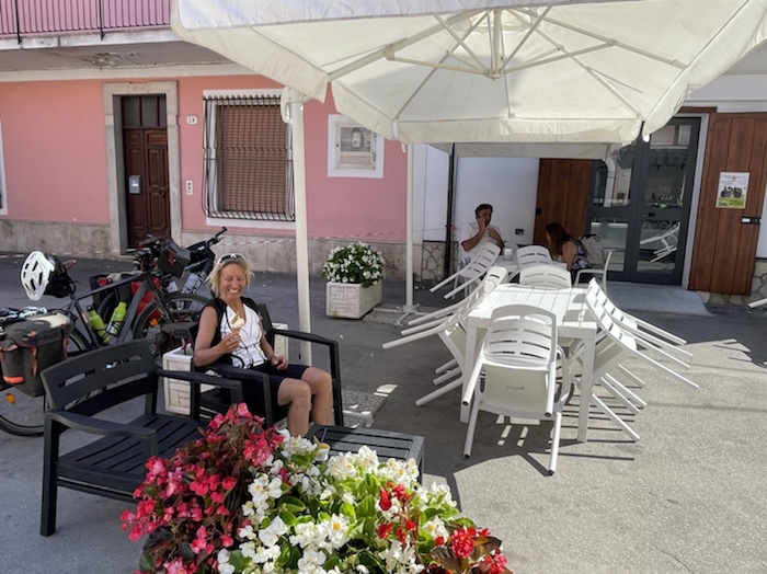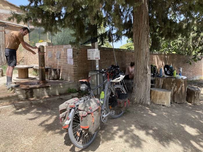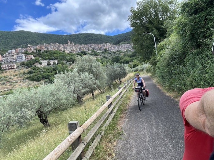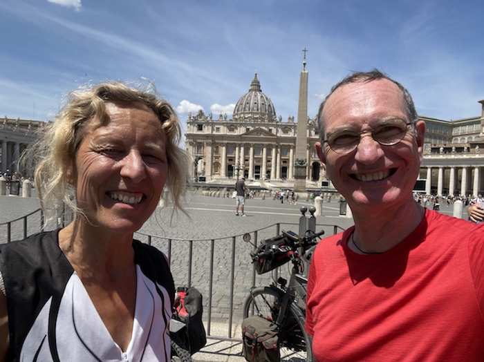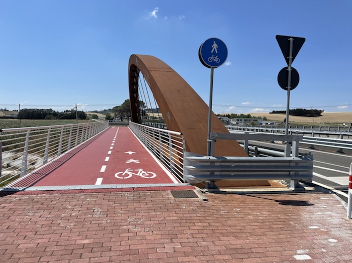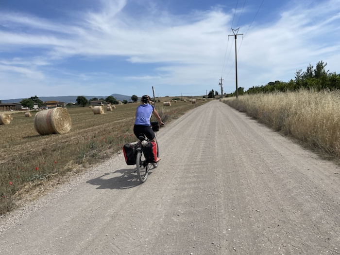 Zum Philosophischen: Italien hat mich begeistert! Keine meiner Sorgen oder Befürchtungen war berechtigt. Das vom Nachbarn geliehene Buch hat mich auf Vieles, was mir unterwegs aufgefallen ist, vorbereitet. Ich glaube, auf meine Stimmung hat sich am ehesten das Müllproblem in weiten Teilen des Landes negativ ausgewirkt. Das war manchmal schwer zu ertragen. Lang waren manche etwas langweilige Passagen durch endlose Plantagen, wie Flussradwege halt, nur ohne Fluss und Bänke. Die schlechten Wege und Straßen waren anstrengend, aber kein Grund zur Sorge. Der Verkehr, das viele Gehupe, das Einfädeln in den Verkehr, egal welche Schilder stehen, damit bin ich schnell gut klargekommen. Gegen die Einbahnstraße zu fahren war immer eine gute Wahl, vor allem in Rom. Gute Radinfrastruktur habe ich auch oft gesehen, wenn auch, wie auch oft bei uns, viel Stückwerk. Die Staubpisten sind gewöhnungsbedürftig und für Mensch und Material eine Belastung. Dafür führen sie abseits vom Verkehr durch dieses wunderschöne Land. Das gute Essen, die freundlichen Gastgeber- und Kellner:innen, die ungeheuere Vielzahl an kulturellen Schätzen, die Landschaftsvielfalt, das trocken warme Wetter, die vielen netten Begegnungen: Die Liste an Gründen ist lang, die Reise als sehr gelungen zu sehen.