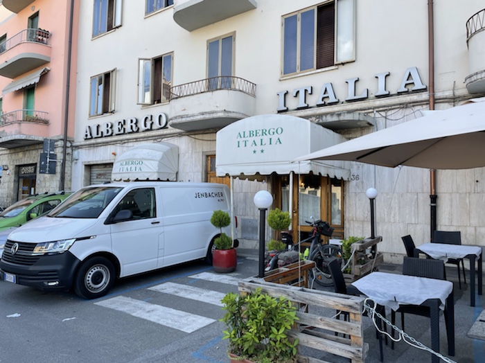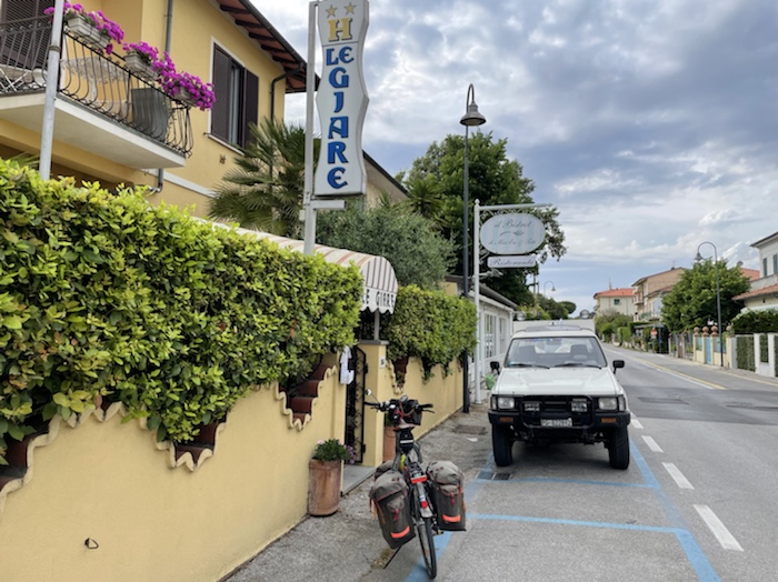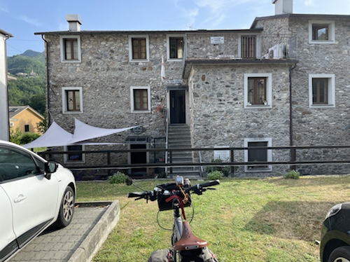 Für Oberalp-Lukmanier-Route habe ich alle Hotels bis nach Chiusi schon gebucht, auch eines im Apennin. Dieses kleine Hotel habe ich per Mail auf Italienisch angeschrieben. Den Text für die Anfrage und Rückbestätigung habe ich mir von translator.eu vom Deutschen ins Italienische übersetzen lassen. Der Wirt hat sehr nett geschrieben.