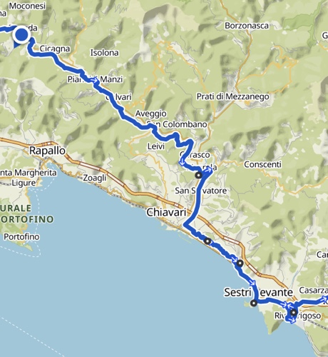 Von Mailand zur ligurischen Küste und den Cinque Terre könnte man über Alexandria und Genua fahren. Die Strecke ist aber recht flach. Alternativ habe ich mir überlegt, über die Casa del Romano im Parco Naturale dell’Antola im Grenzgebiet von Ligurien, Piemont und Emilia Romagna zu fahren. quaeldich.de findet für den Pass nur lobende Worte ob der Naturschönheit. Einziges Manko ist das Fehlen einer guten Übernachtungsinfrastruktur.