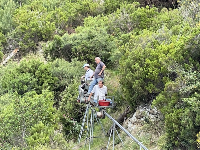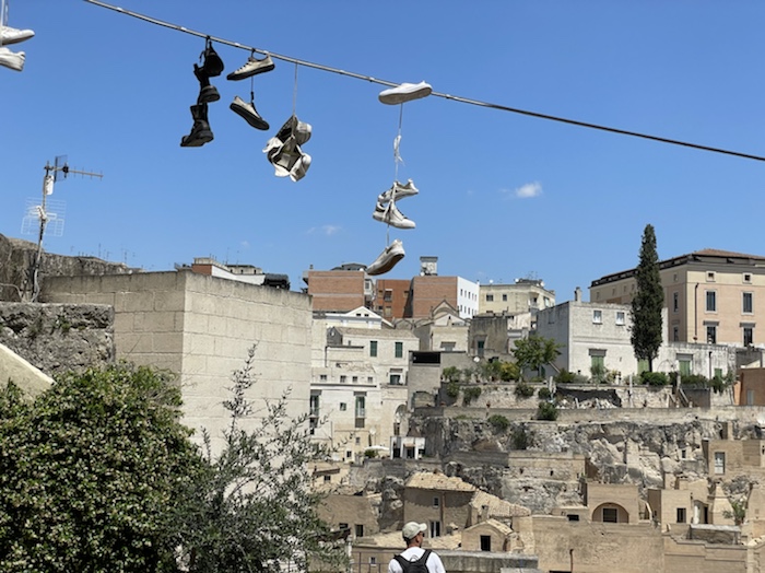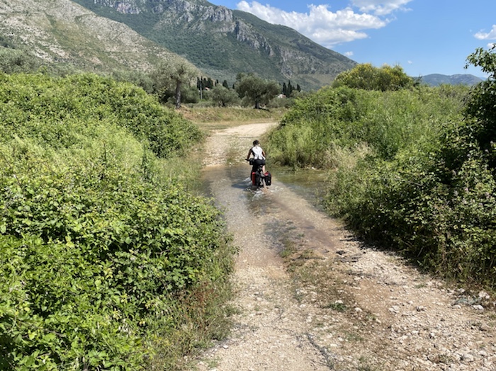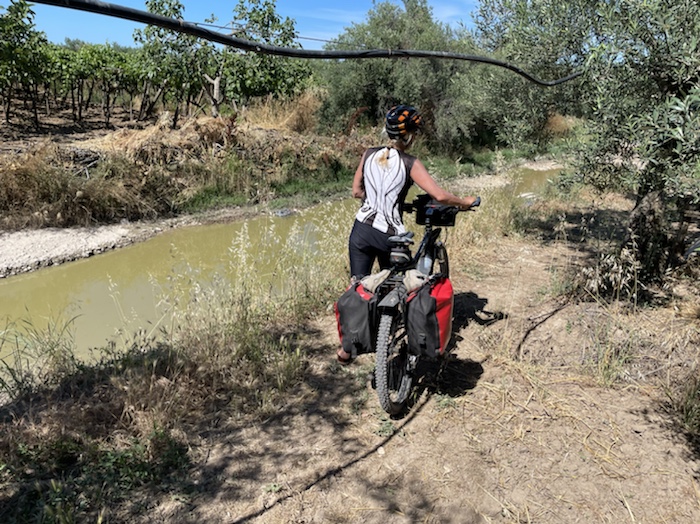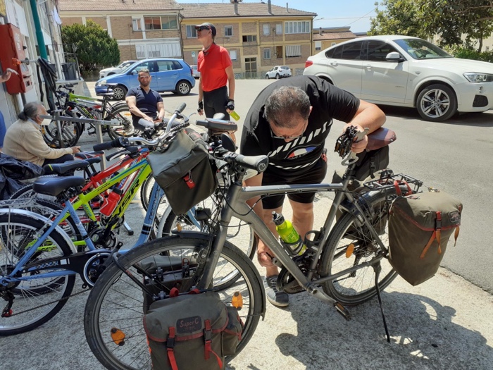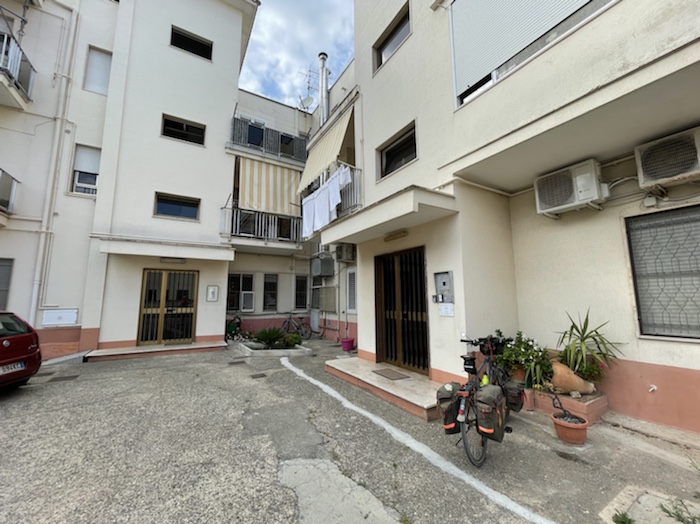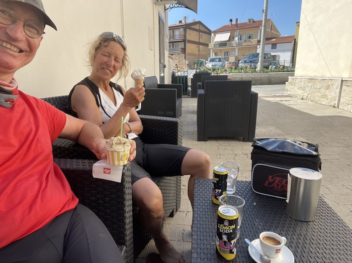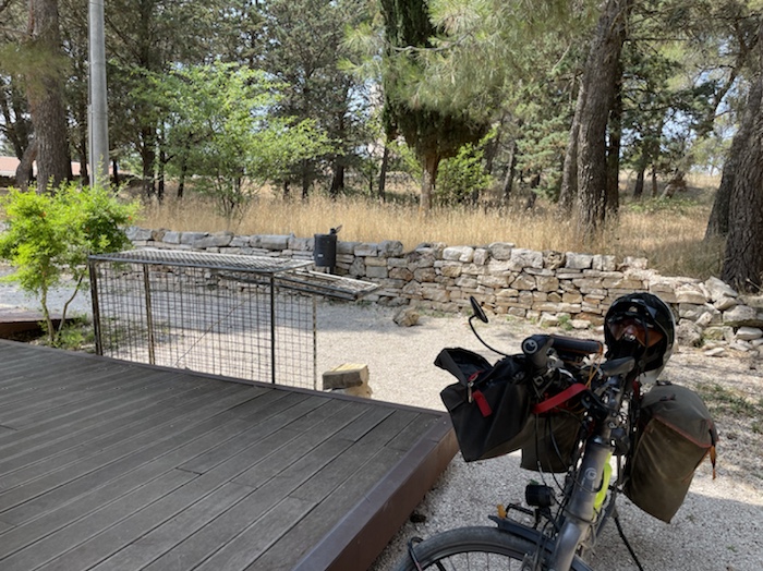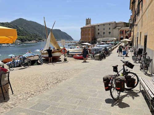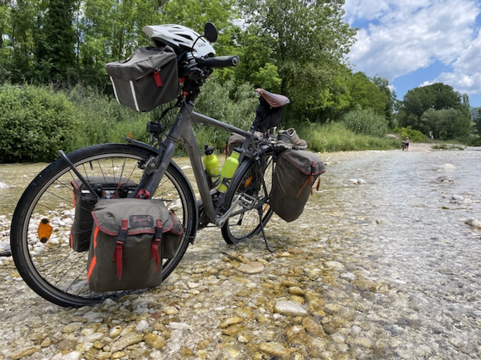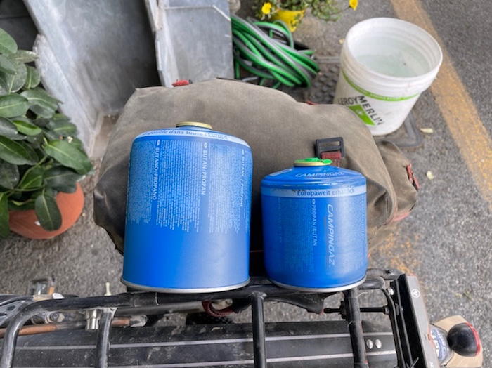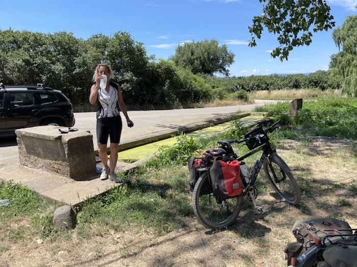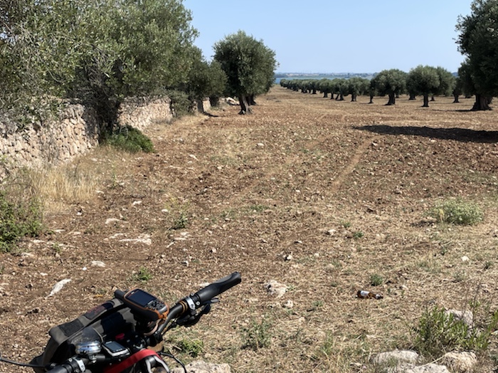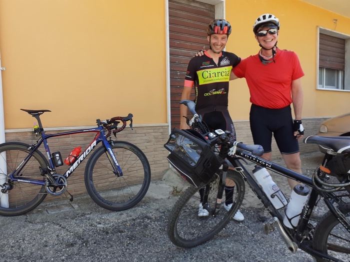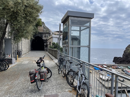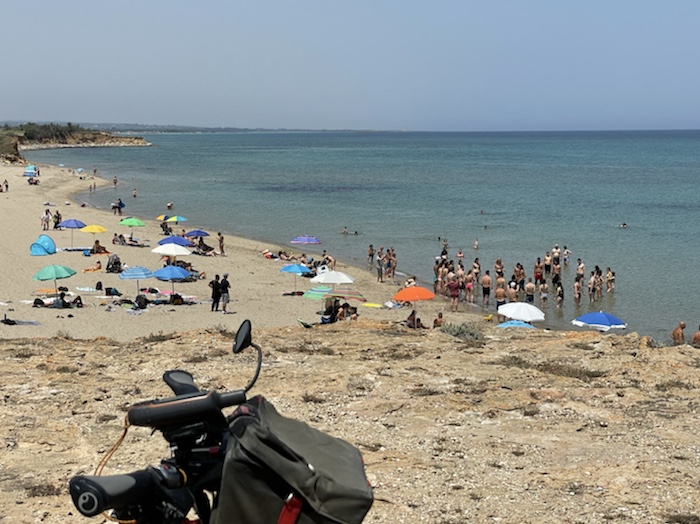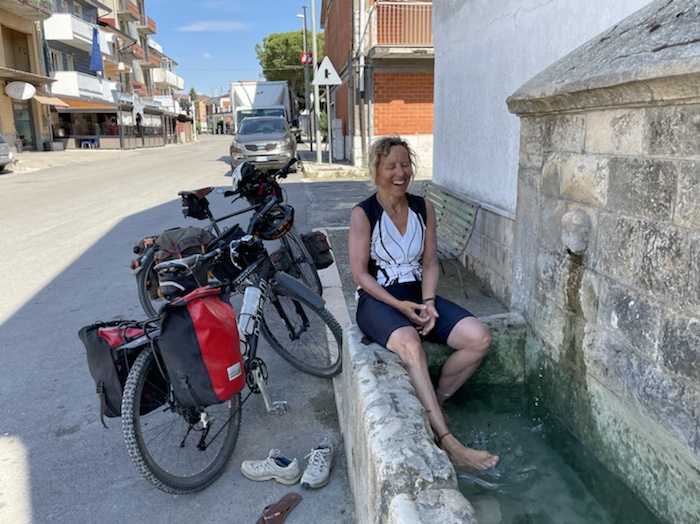 Ich habe zwei jungen deutschen Bike-Packern beim Einsteigen geholfen. Sie haben mich wohl vorgestern in Ostuni gesehen und konnten sich an meine grünen Wasserflaschen erinnern.
