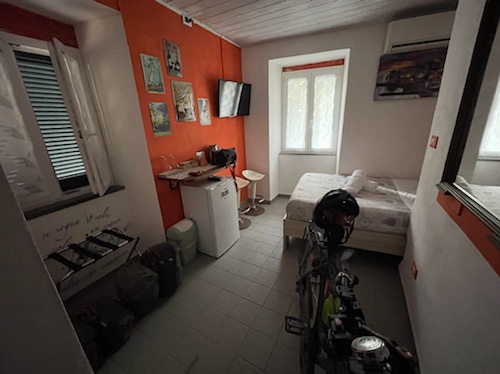 Unterkünfte: Es passte gut, manchmal sehr spartanisch, aber ein festes Dach und Privatsphäre, mal fast luxuriös. Eine Mischung aus Privat- und Hotelzimmern, fast ausschließlich über Booking.com. Nur das eine Hotel im Apennin habe ich über Email-Kontakt gebucht. Alle Reservierungen haben gestimmt und bis auch die merkwürdige Erfahrung in Riomaggiore hat es immer sehr gut mit den Vermietern gepasst.