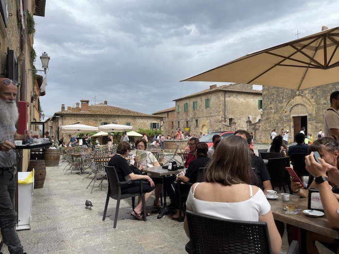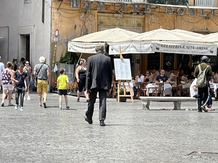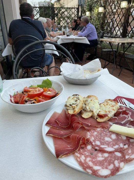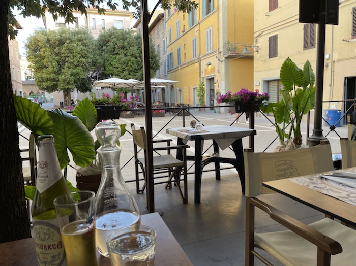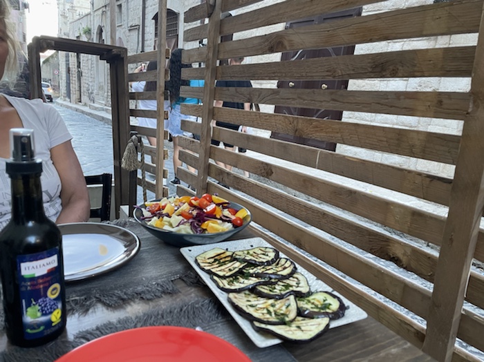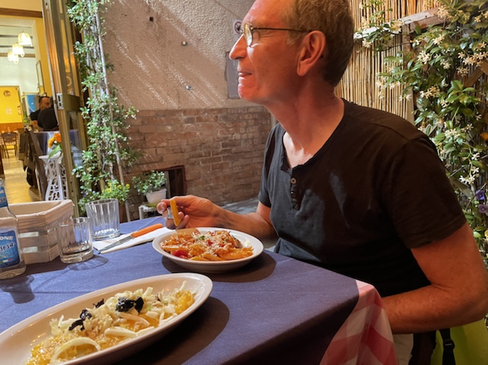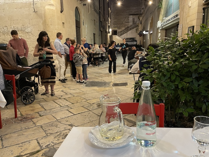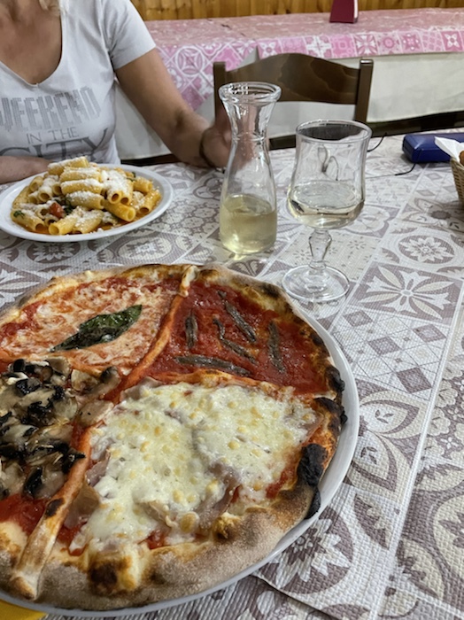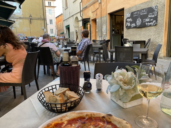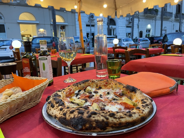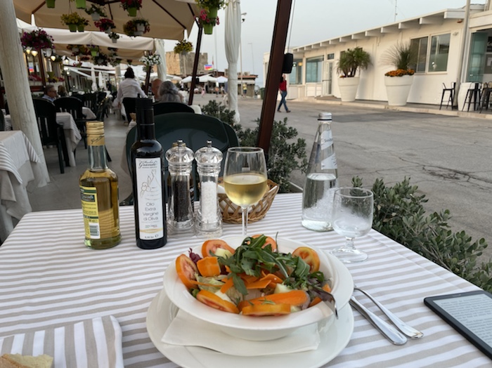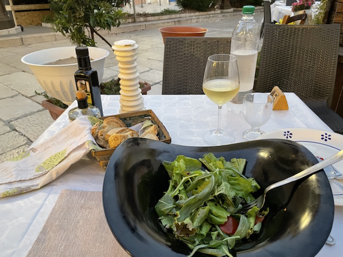 20.47 Uhr – Auf Empfehlung des Rezeptionisten war im Trullo am Corso Roma. Es gab klassisch gemischten Salat und danach Pizza. Das Glas Wein war ziemlich groß und ich fühle schon eine gewisse Bettschwere, die ich gut gebrauchen kann. Der Wecker steht auf 5.15 Uhr. Nun noch einen Caffé, aber keinen Nachtisch mehr.