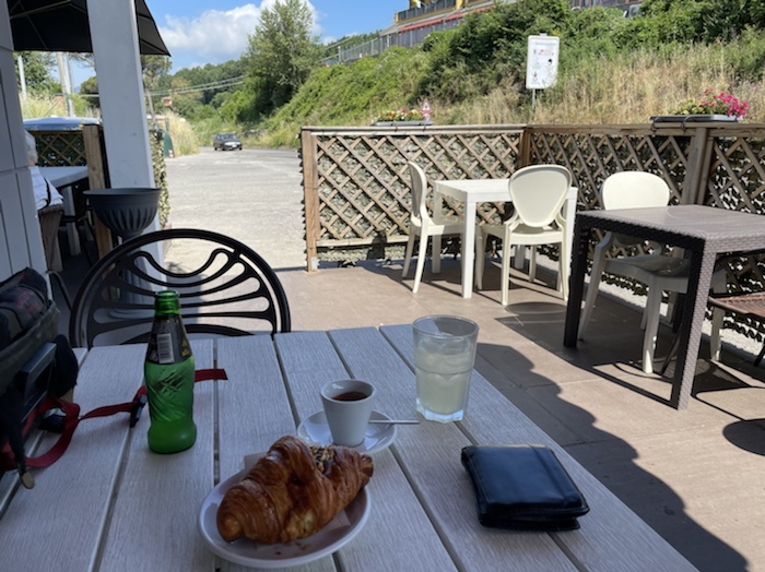 11.58 Uhr – Kilometer 31 in Erstfeld. 34,6° C im Schatten zeigt der Tacho. Es wurde dringend Zeit für eine Pause. Der Kaffee ist fertig!