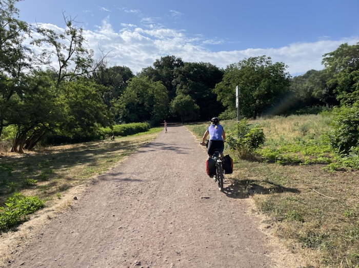 7.35 Uhr – Abschied und Abfahrt. Das Rad kommt mir heute sehr schwer vor.