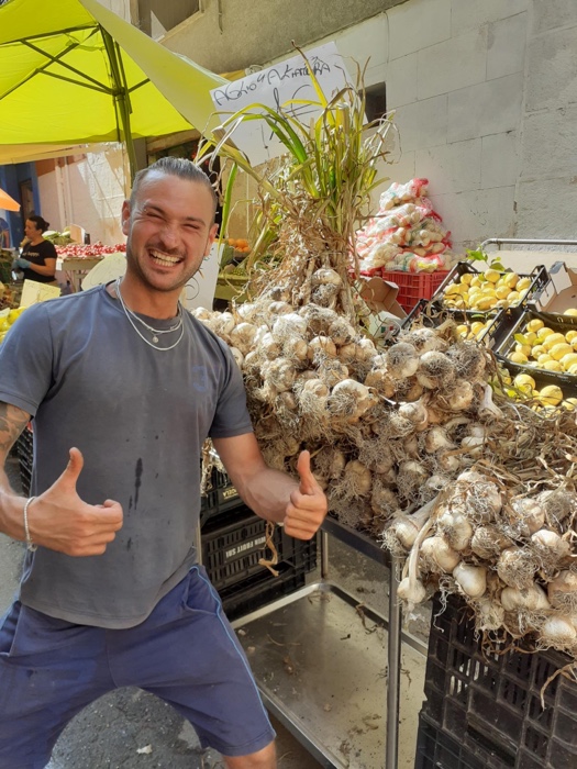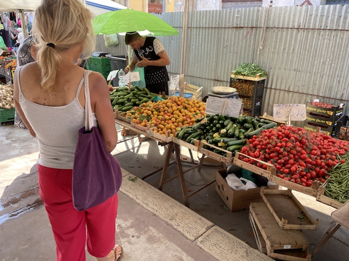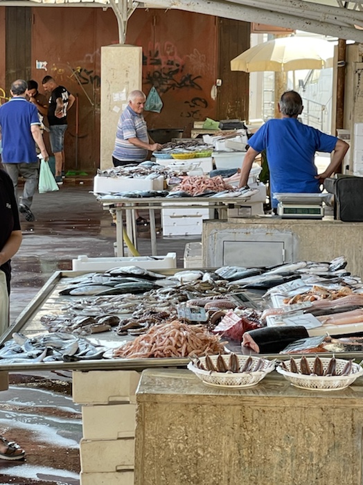 19.17 Uhr – Die Einkäufe aus dem Supermarkt stehen im Kühlschrank. Nun habe ich auch endlich ein paar akzeptable Postkarten. Nach fast zwei Stunden Umherstreifen bin ich zu dem einzigen Tabachhi, der ein paar uralte, eher wenig schöne Postkarten hatte und habe welche gekauft. Auf der Suche nach Briefmarken war ich gleich um die Ecke in einem weiteren Lädchen, und die hatten dann tatsächlich brauchbare. Also, sowas. Aber die Tabacchi verkaufen wohl alle keine Briefmarken und das Postamt hat schon zu. Vielleicht werden es am Ende deutsche Briefmarken.