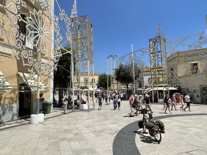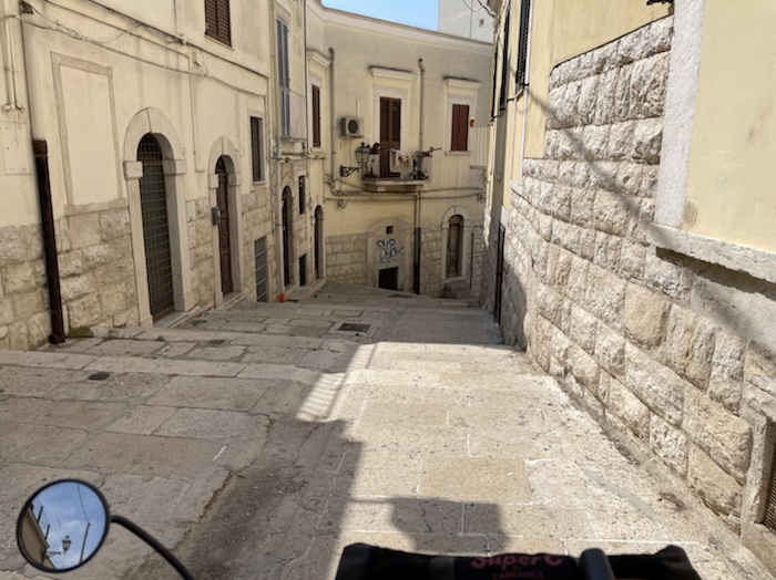 13.43 Uhr – Kilometer 41. Wir reiten in die Altstadt von Brindisi.