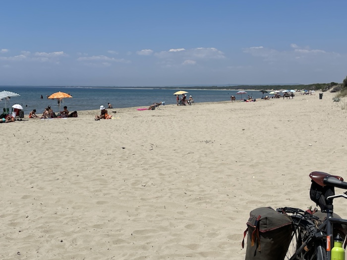 Jetzt fahren wir quasi durch die Campingplätze, die unter den Pinien direkt am Meer liegen.