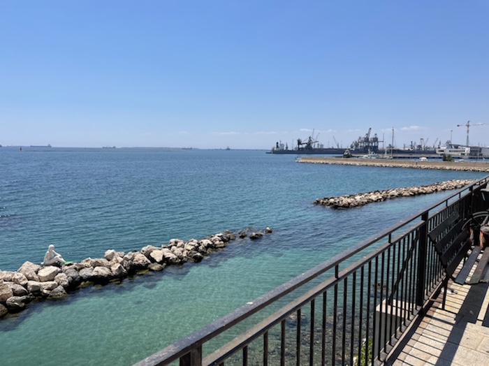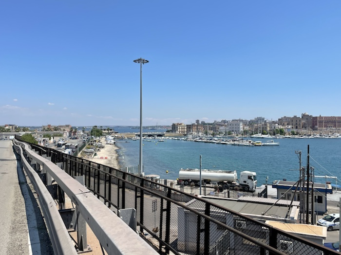 7.57 Uhr – Wir fahren direkt neben der Küstenstraße am Meer entlang auf Bari zu.