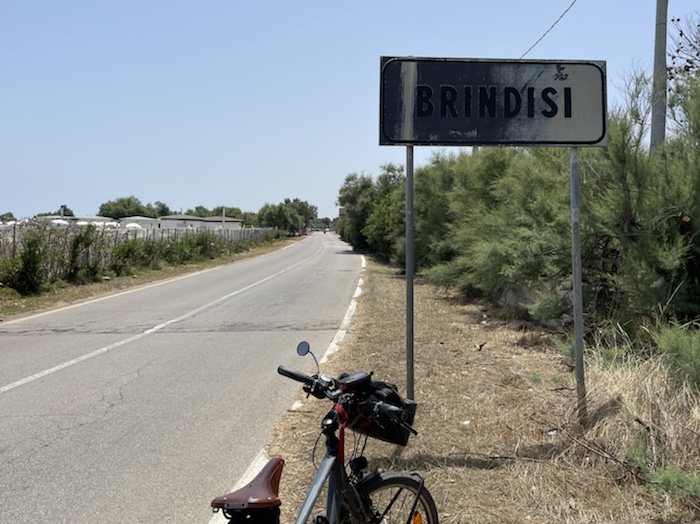 Brindisi, das Ziel der Tour, ist nicht nur das Tor für eine Weiterfahrt nach Griechenland, von dort fahren auch durchgehende Schnellzüge nach Bologna, die neuerdings ein Fahrradabteil haben. Es gibt sogar eine Verbindung, die mich am gleichen Tag von Bologna weiter nach München bringt, von wo abends noch ein ICE nach Siegburg abfährt, der gegen sechs Uhr morgens dort ist. Fünfzig Minuten Umsteigezeit in Bologna ist allerdings etwas knapp. Mal sehen, wie ich es mache.