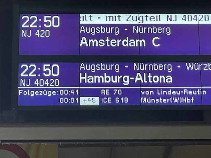 Die aktuelle Angabe (+45) bei meinem ICE 618 nehme ich mal als Scherz.
