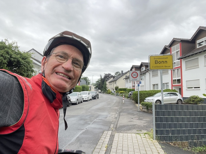 22.14 Uhr – Habe gerade den Tipp bekommen, mal die Wettervorhersage für Bonn zu checken: Es steht wohl eine intensive Regenwäsche für Fahrrad und Taschen an. So habe ich mir das nicht vorgestellt. Mal sehen.