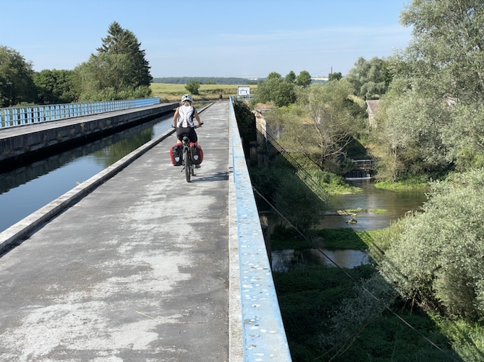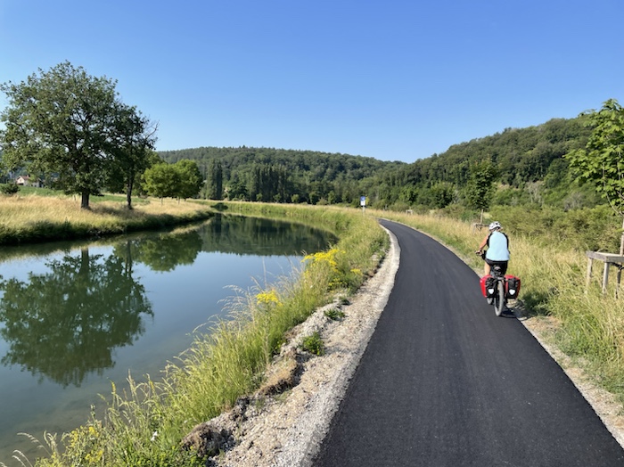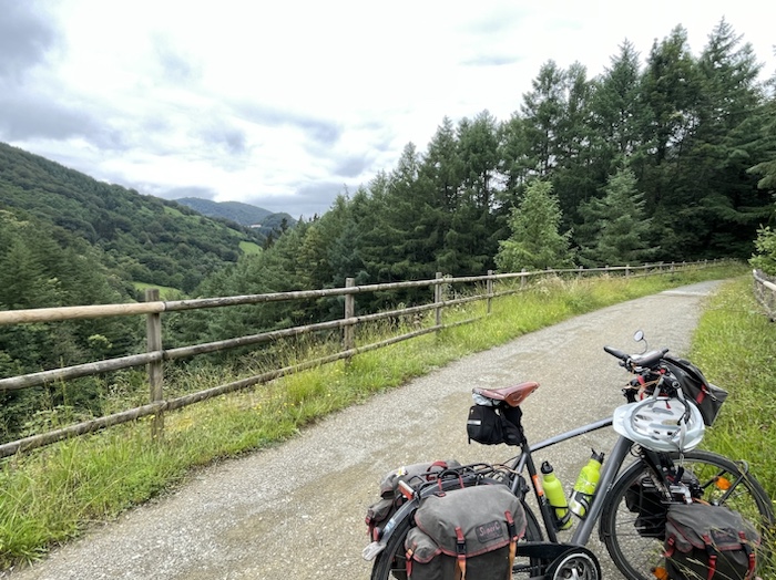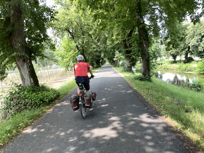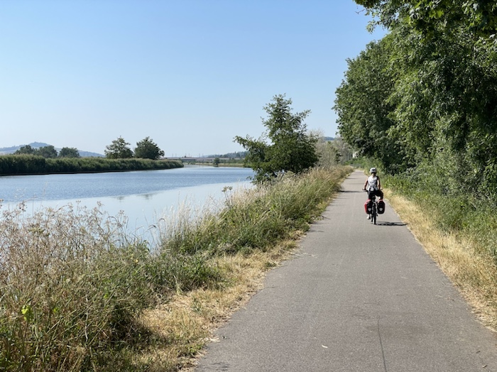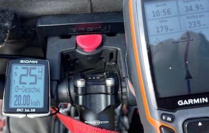 Der Streckenverlauf hat uns an viele interessante Orte geführt, für die man sich sicher viel mehr Zeit hätte nehmen können. Dafür gab es auch einige Tage mit nur wenigen Pausenorten, wenig Abwechslung. Das ist bei einer langen Reise auch normal. Berge mit Pässen bieten schon durch die sich ständig ändernde Höhe immer wieder neue Aussichten, sind aber auch anstrengend. Flüsse und Kanäle, ohne Abwechslung, sind aber auch manchmal anstrengend, wie wir erleben durften. Weniger Kilometer pro Tag wären wirklich gut, also nahe an 60 statt 70, wie diesmal. Auch die durchschnittlichen 700 Höhenmeter pro Tag waren zu viel.