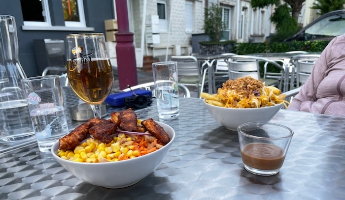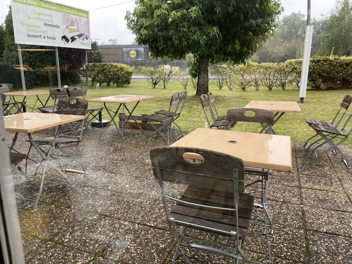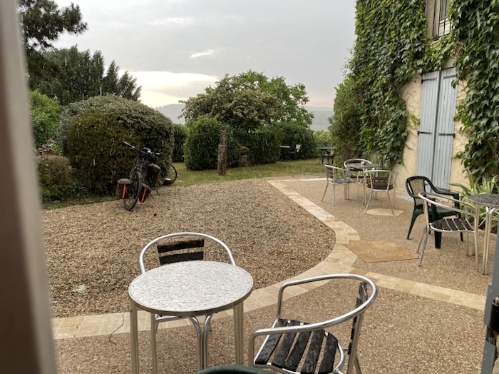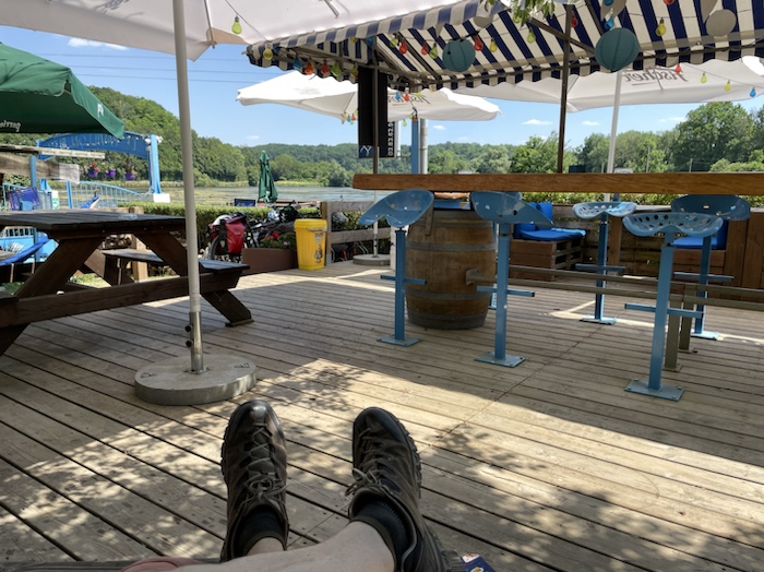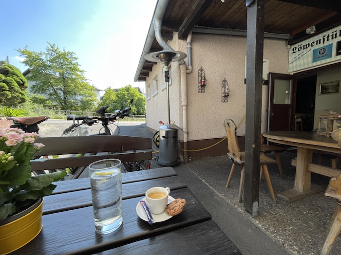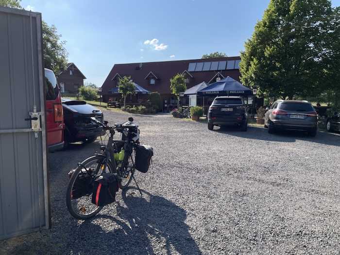 18.10 Uhr – Das Rad kommt in die Garage. Die Restaurant-Terrasse sieht sehr gemütlich aus.