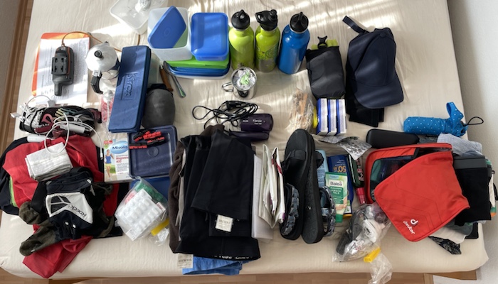 Eine neue Badehose und eine neue Kappe kommen zum Einsatz. Alle anderen Ausrüstungsteile haben sich schon auf früheren Radreisen bewährt.