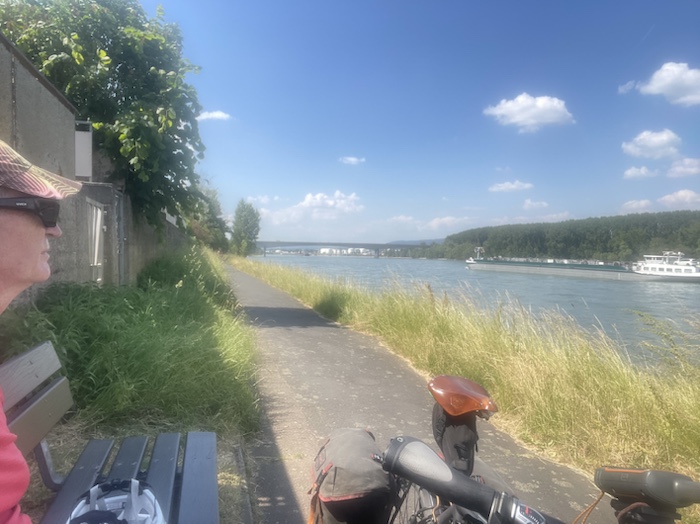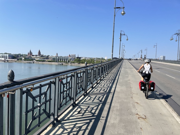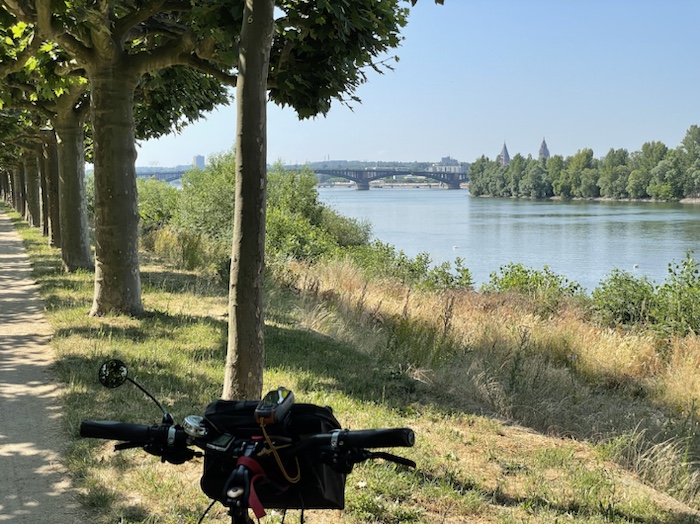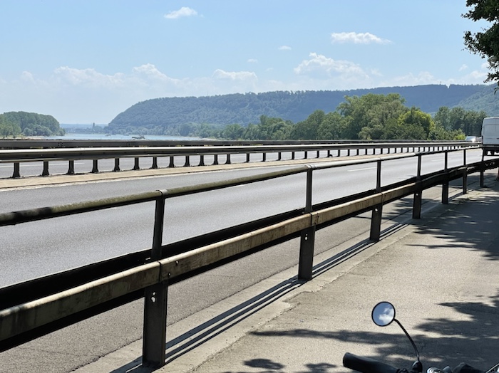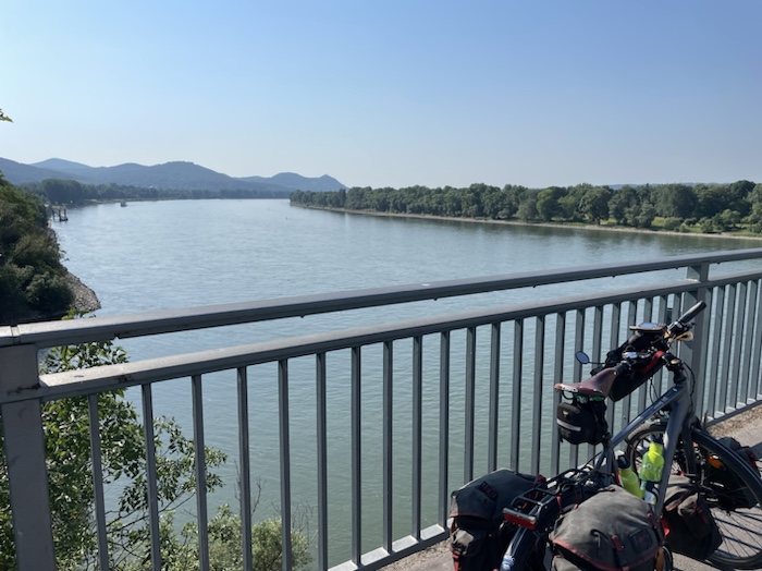 9.45 Uhr – Die erste Rheinüberquerung. Das Thermometer zeigt schon 25° C im Schatten.