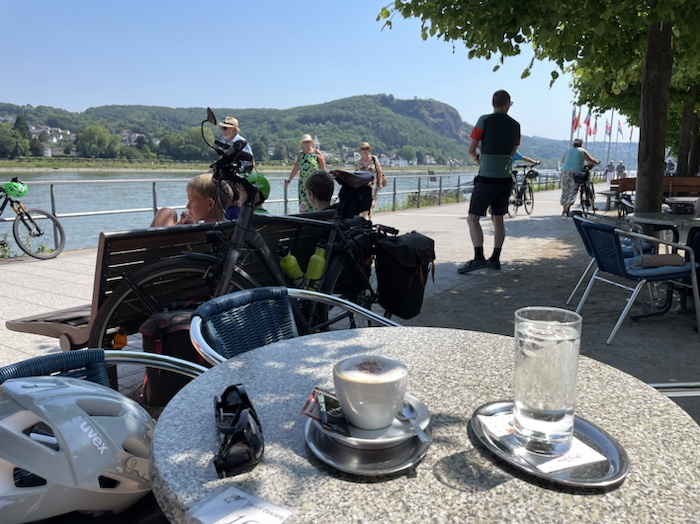 Es geht heute bis auf die letzten Kilometer einfach die bekannte Strecke auf der linken Seite am Rhein entlang. In Koblenz wechsle ich zur rechten Seite und radle in Lahnstein den Berg hinauf zum Hotel.