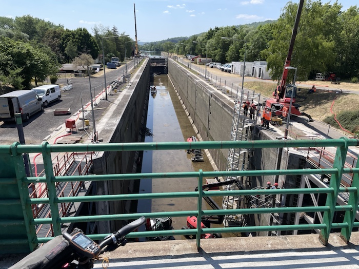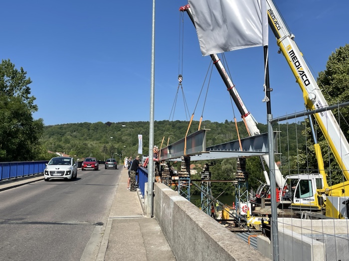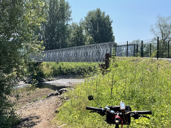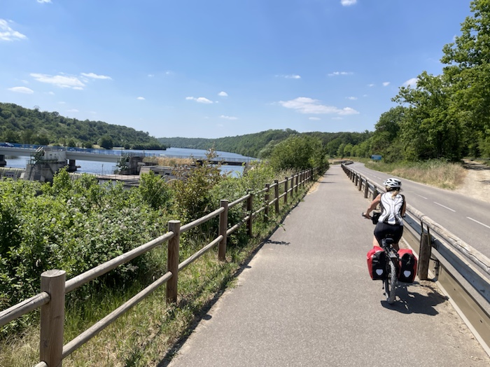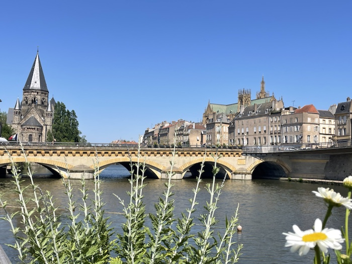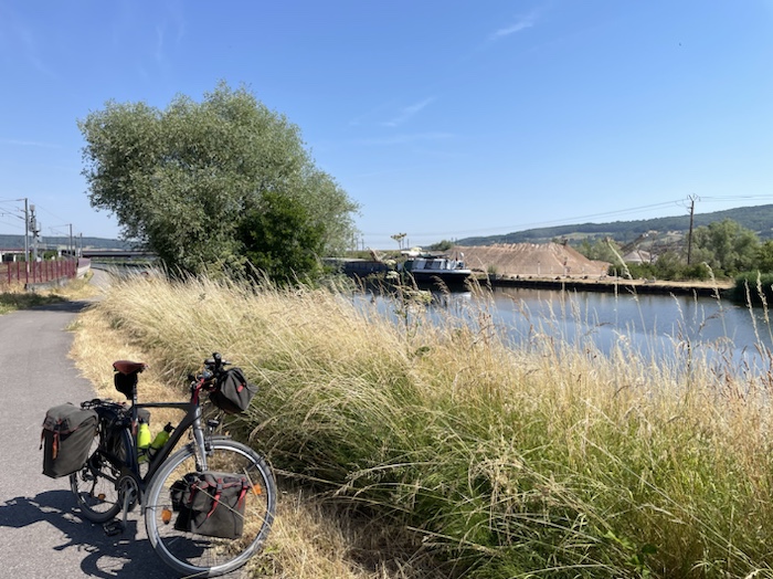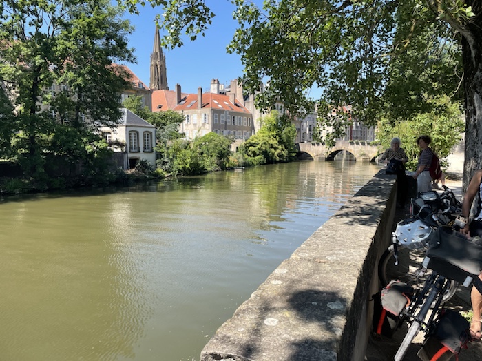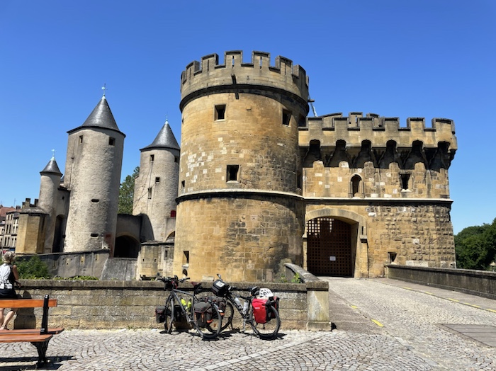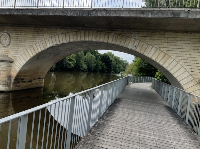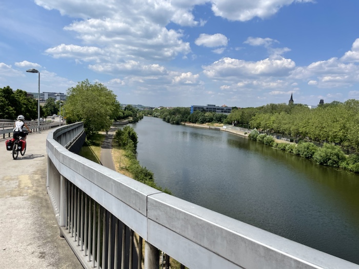 16.06 Uhr – Wir überqueren die Mosel bei Pont-à-Mousson. Unter dieser Brücke sind wir vor etwa drei Wochen hindurch geradelt.