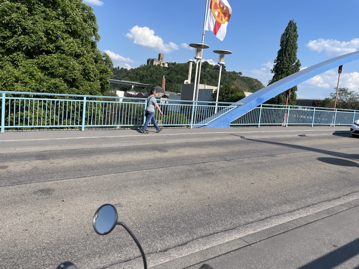 16.56 Uhr – Kilometer 72. Meine zweite Rheinquerung heute. Es scheint, als hätte ich Richtung Lahnstein ein bisschen Rückenwind!