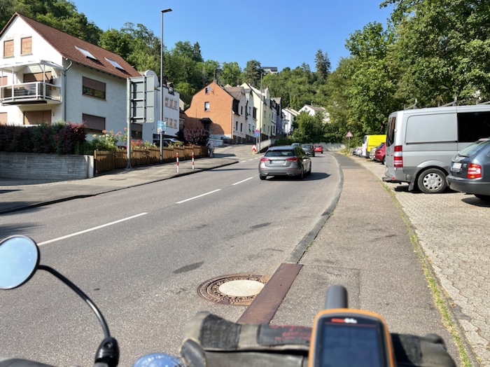 17.30 Uhr – Kilometer 80. Jetzt bin ich im Anstieg zur Lahnhöhe und damit zum Hotel. Etwas Verkehr, aber die Steigung ist moderat.