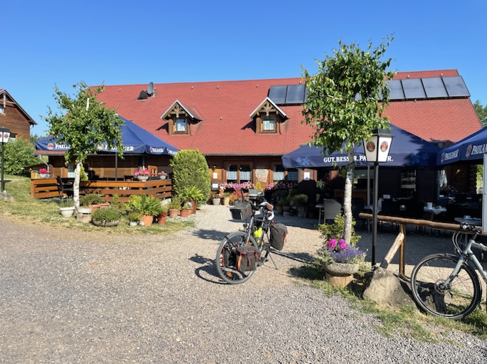 Das Planen der Strecke und das Buchen der Zimmer im Voraus ist enorm entspannend für das Unterwegssein. Es reduziert den täglichen Entscheidungsaufwand massiv und schafft Zeit für Pausen und abendliche Erholung. Zwei Mal musste ich auf dieser Tour abends oder unterwegs Abschnitte anpassen, weil ich zu Hause übersehen hatte, dass Komoot mehrere Kilometer Nationalstraße oder unsinnig steile Abkürzungen für Serpentinen eingebaut hatte. Ansonsten passte der Streckenverlauf sehr gut.