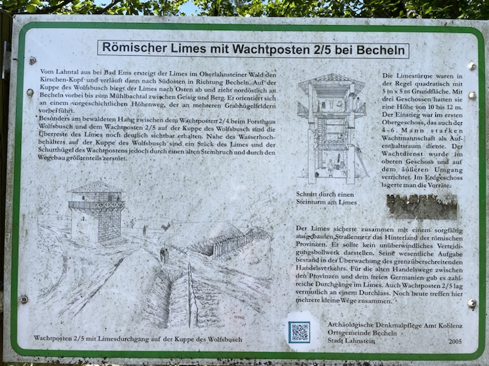 Hier gibt es überall Hinweistafeln zu den Wachtürmen und dem Verlauf des Limes.