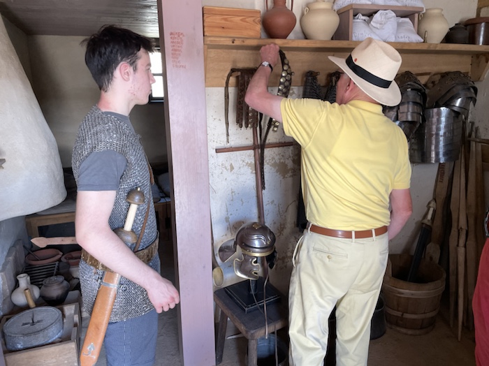 12.46 Uhr – Hier wird ein junger Besucher vom Ausstellungsführer mit der Ausrüstung eines Auxiliars eingekleidet. Die Informationen zum Limes und die sehr detailgetreue Rekonstruktion des Kastells sind interessant, aber langsam muss ich mal weiter.