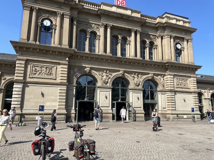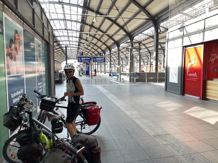 Der Weg bis zur Straße hat fast fünfzehn Minuten gedauert. Unglaublich viele Menschen halten sich an diesem Freitagmittag im Bahnhof auf. Wir kamen mit den Rädern kaum durch.