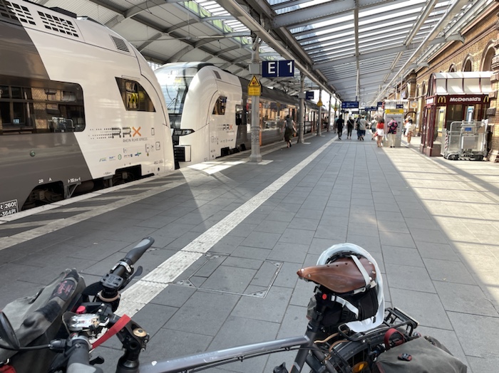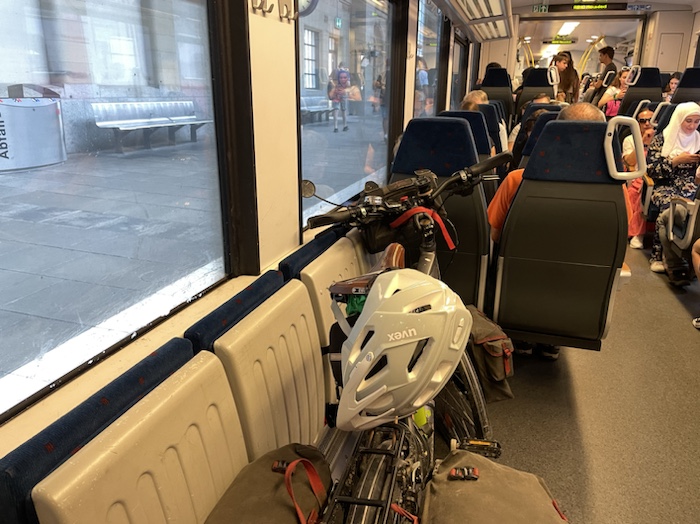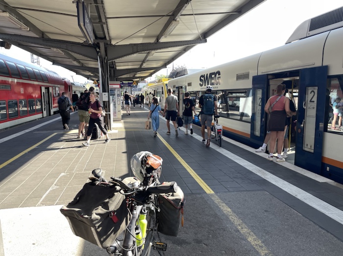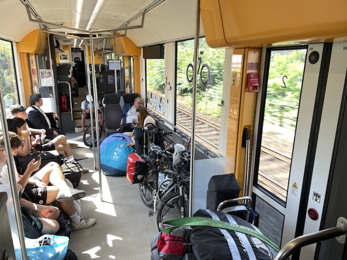 17.15 Uhr – Wir sind drin, die Räder auch. Dritter Zug-Abschnitt von fünfen ist erfolgreich angetreten.