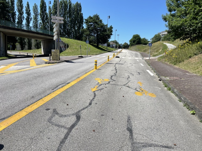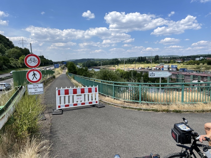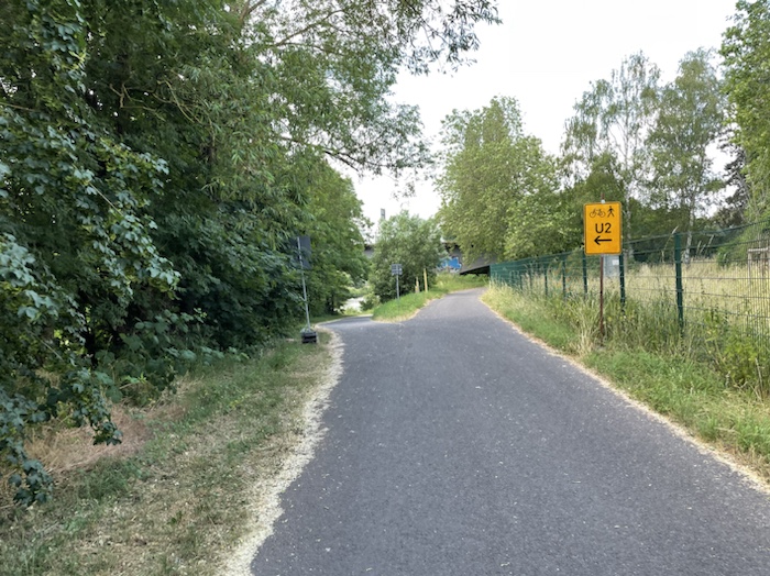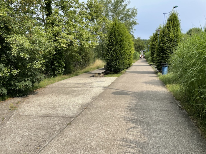 13.36 Uhr – Kombinierter Rad-Fuß-Weg, für beide Richtungen natürlich. Schon sehr sparsam angelegt, aber fahrbar, wenn man alleine unterwegs ist.