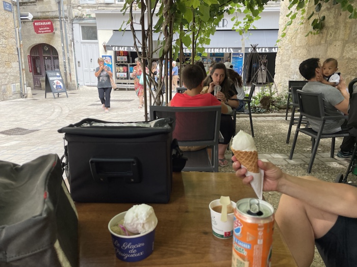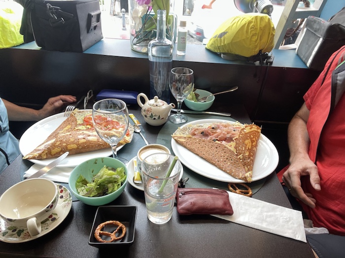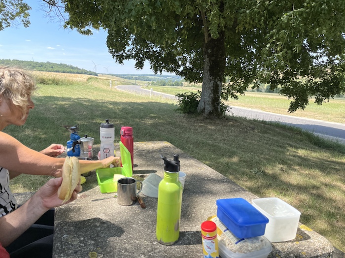 So auch die kleinen Begegnungen mit Menschen am Weg, die zufällig Deutsch sprechen, oder Englisch oder Zeit für mein gebrochenes Französisch haben. Sie sind gut für die Seele, und manchmal auch schlicht für die Lösung eines praktischen Problems: Wo gibt es einen Supermarkt, wann öffnet die Boulangerie, wann schließt die Kirche.
