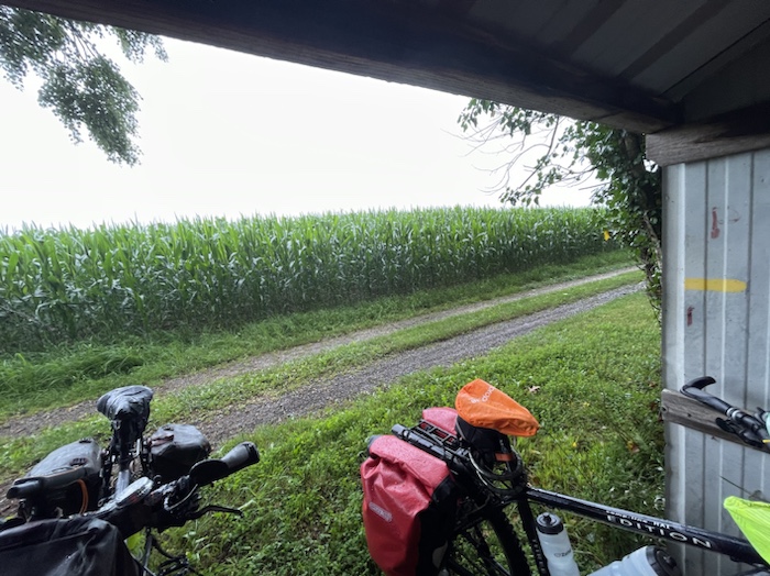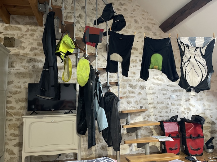 Dies war meine neunte mehrwöchige Radreise seit ich 2015 damit angefangen habe. Die Etappenplanung war nicht einfach und einige lange Tagesetappen waren nicht vermeidbar, da ich von zu Hause keine anderen Unterkünfte gefunden habe. Diese geplant langen Tage und die ungeplanten Regentage waren große Herausforderungen. Bei Regen macht mir das Fahren deutlich weniger Spaß, vor allem, wenn es nach einer Pause im Trockenen in nasser Kleidung wieder in den Regen hinaus geht. An diesen Tagen trocknet die Radkleidung nach dem abendlichen Waschen nachts kaum, und der Fön muss am Morgen ur Hilfe genommen werden.