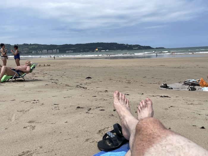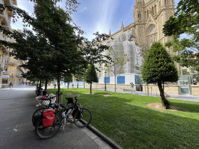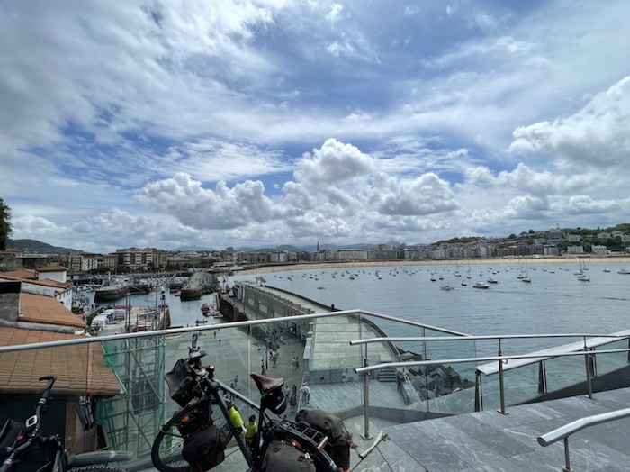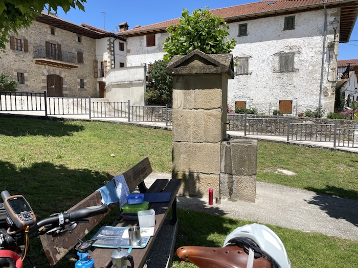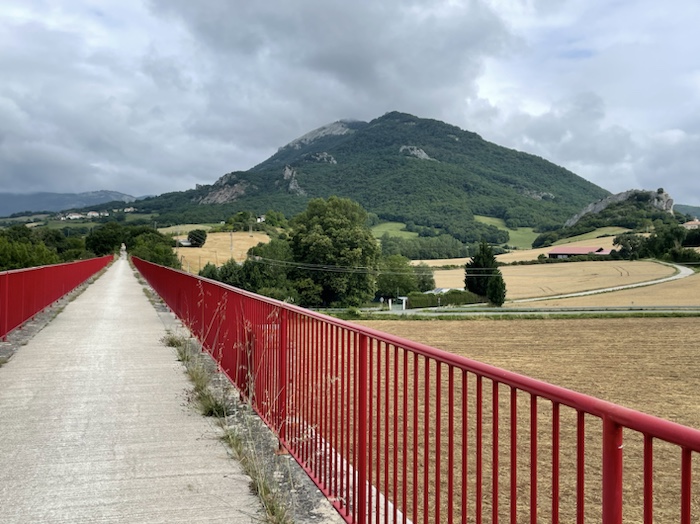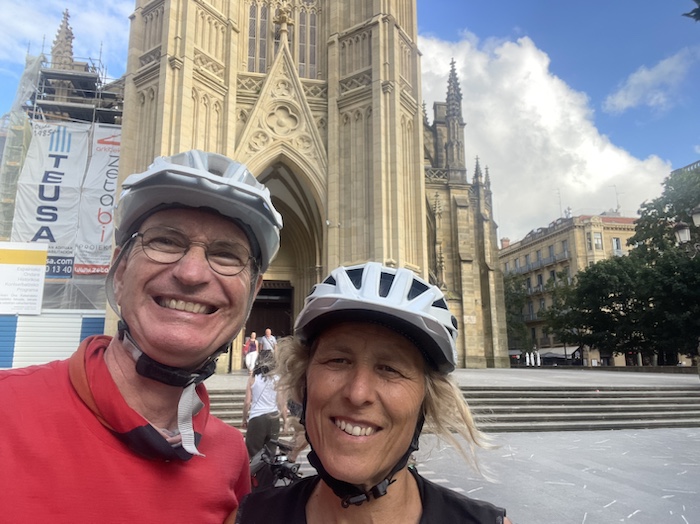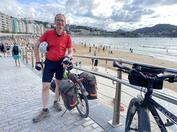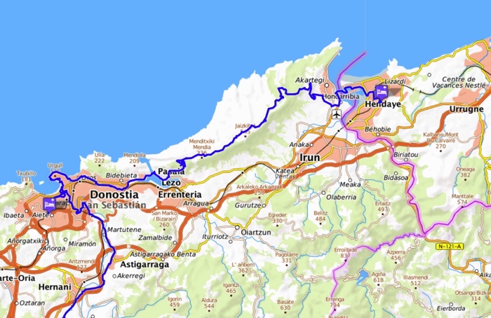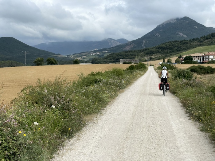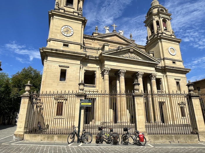 Ab Saint-Jean-Pied-de-Port, wo drei der Hauptpilgerrouten zusammenlaufen, können wir dem EuroVelo 3 folgen, der uns auf dem Camino Francés über einen Pass nach Roncevalles und weiter nach Pamplona bringt. Dort verlassen wir die Santiago-Pilger und radeln auf einer alten Bahntrasse mit langen Tunneln nach Norden auf San Sebastián zu. Am Atlantik soll ein Ruhetag eingelegt werden, bevor es von Hendaye mit dem Zug über Bordeaux zurück nach Wiesbaden geht.