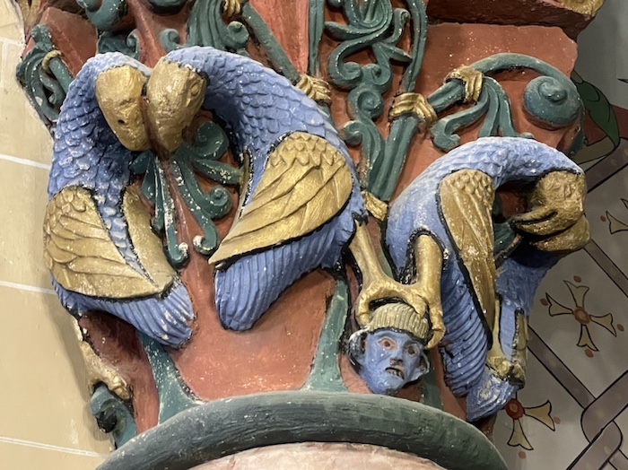 Das mittelalterliche Hoftor steht seit 1902 an dieser Stelle. Es zeigt eine Reihe christlicher und heidnischer Symbole und ist Gegenstand von Deutungsdiskussionen unter Theologen und Kunsthistorikern.