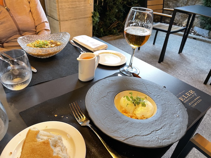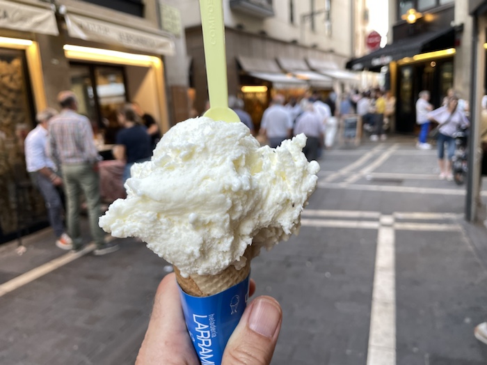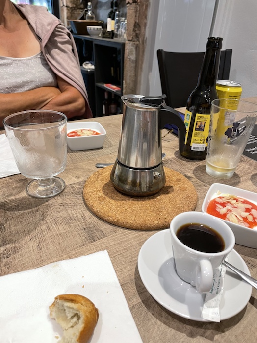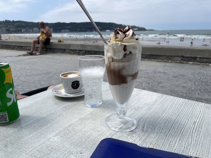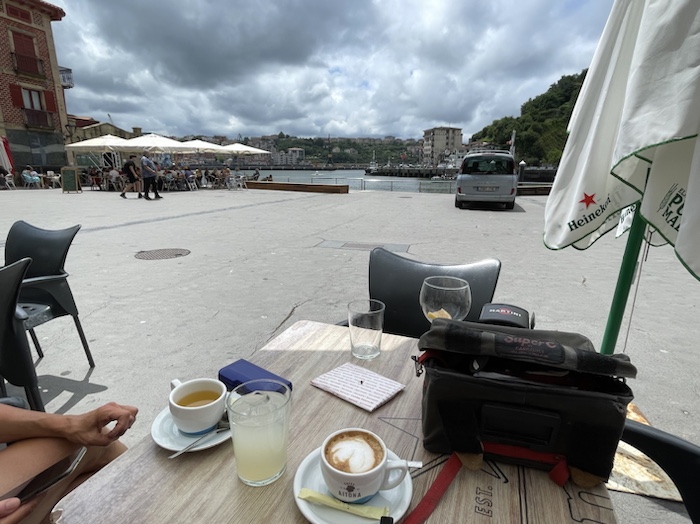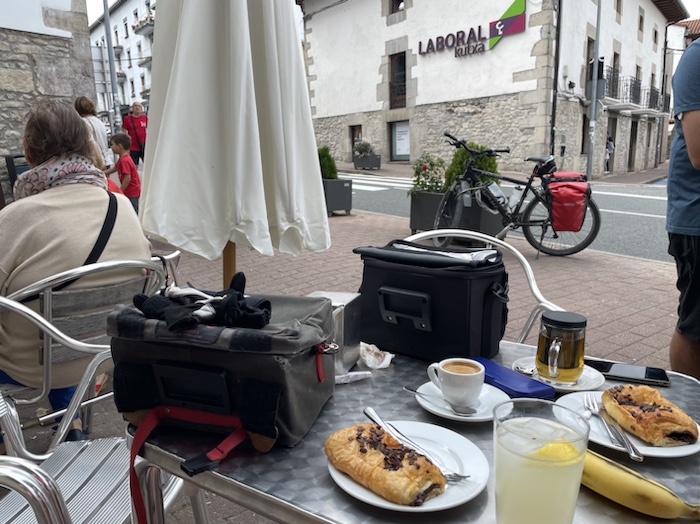 8.18 Uhr – Das zweite Frühstück. Der Joghurt ist noch aus San Sebastián.