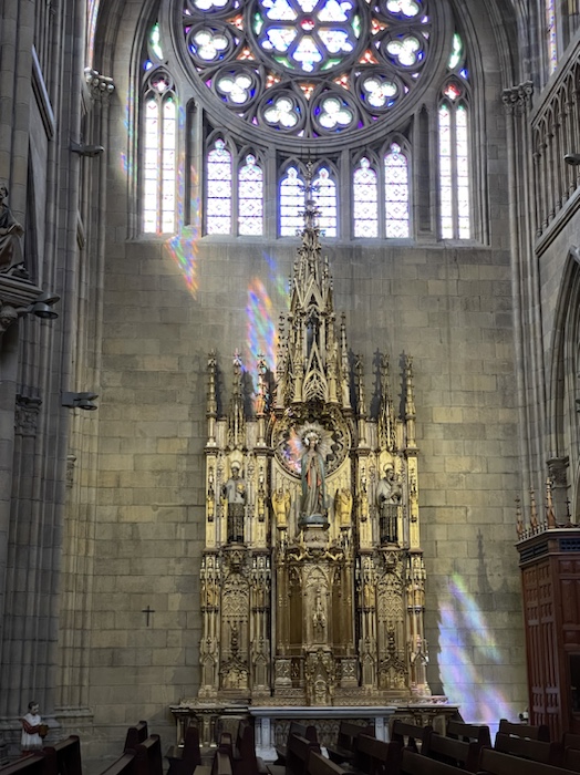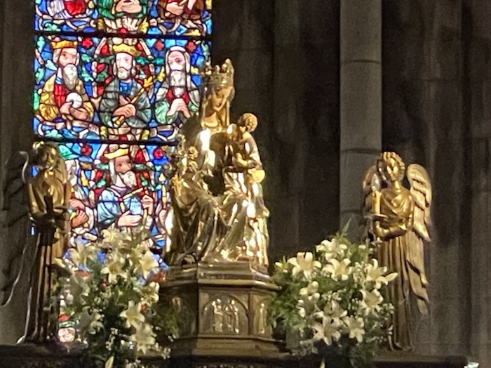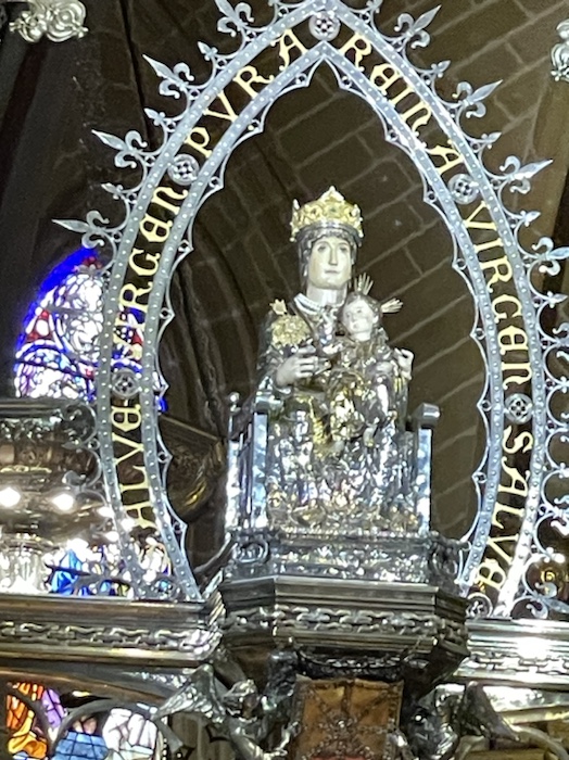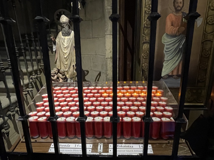 Trotz eines fotografierenden jungen Mannes habe ich mein erstes gesungenes Gebet gehalten und anschließend wieder zwei Kerzen bei der Pieta angezündet, eine für die Daheimgebliebenen, eine für mich und alle, denen ich heute begegne.
