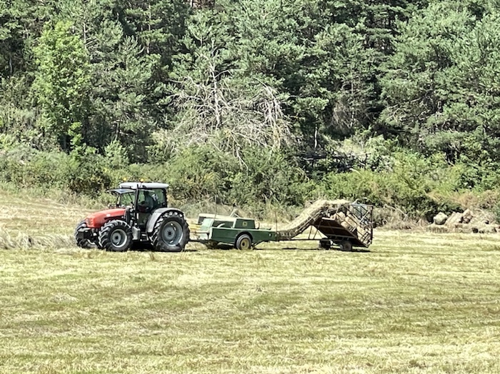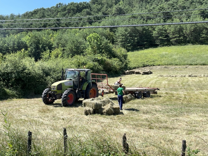 11.06 Uhr – Kilometer 19, nach 340 Höhenmetern: Die Strecke führt nun entlang von Bächen, irgendwann über eine Anhöhe und ab ins nächsten Bachtal. Hier wird fleißig Heu gemacht.