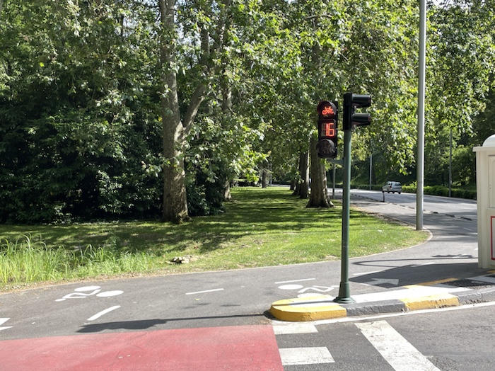 Auf vielen Straßen gibt es mit Mäuerchen abgetrennte schmale Radspuren. Darauf wird man von Radlern und E-Scootern eng überholt. Auf anderen Straßen gibt es breite, kombinierte Bus-Rad-Spuren, die aber auch von den Taxis benutzt werden. Und die wollen mit fünfzig Zentimetern Abstand an einem vorbei. Radler und Fußgänger scheinen die Rotsignale eher als Kunstwerke denn als Verkehrszeichen zu sehen. Man muss also an Kreuzungen und Zebrastreifen immer mit allem rechnen. Das hat mich auf Dauer doch sehr gestresst, auch wenn ich anfangs sehr gelassen rangegangen bin.