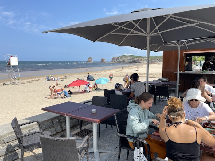 Hier haben wir heute Mittag auf dem Strand gesessen.